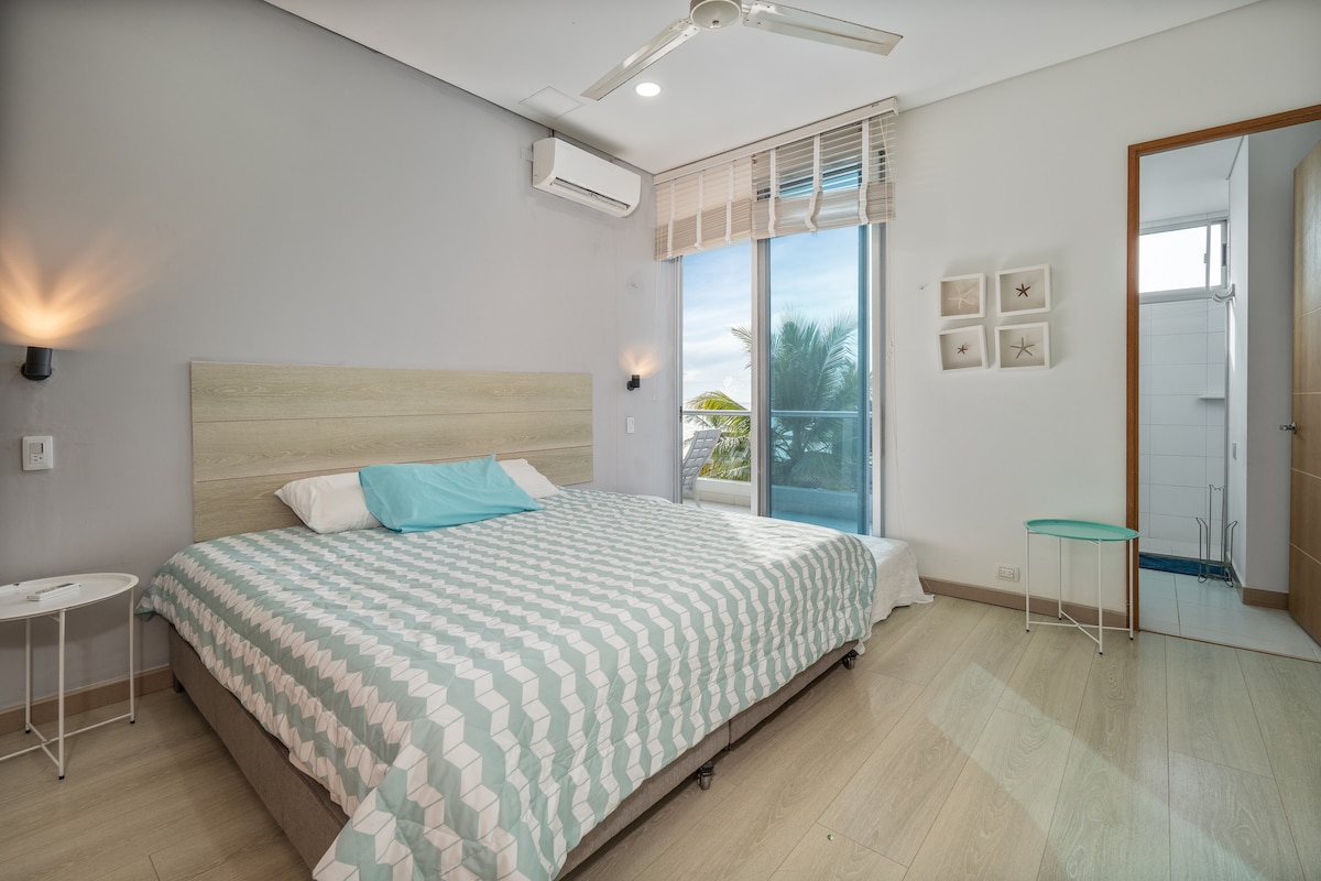 Apartamento moderno pet-friendly en la mejor zona de Coveñas y con la mejor vista al mar que podrás encontrar. El apartamento tiene 3 habitaciones cada una con baño interno. Además, cuenta con una cocina totalmente equipada, zona de labores con lavadora, sala, comedor y 2 balcones tipo terraza donde podrás ver los mejores atardeceres y amaneceres! El conjunto cuenta con un amplia zona de parqueaderos, ascensor, lobby, piscina y zona de playa privada.