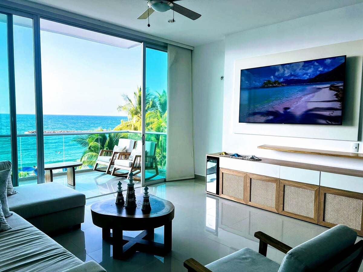 Escápate a este hermoso apartamento que combina el confort moderno con la serenidad del mar. Contamos con una cocina totalmente equipada con todos los utensilios necesarios para preparar desde un desayuno tropical hasta una cena gourmet, un barril que le permitirá disfrutar de un buen asado con vista al mar y demás comodidades pensadas tanto para paseos en familia como entre amigos.