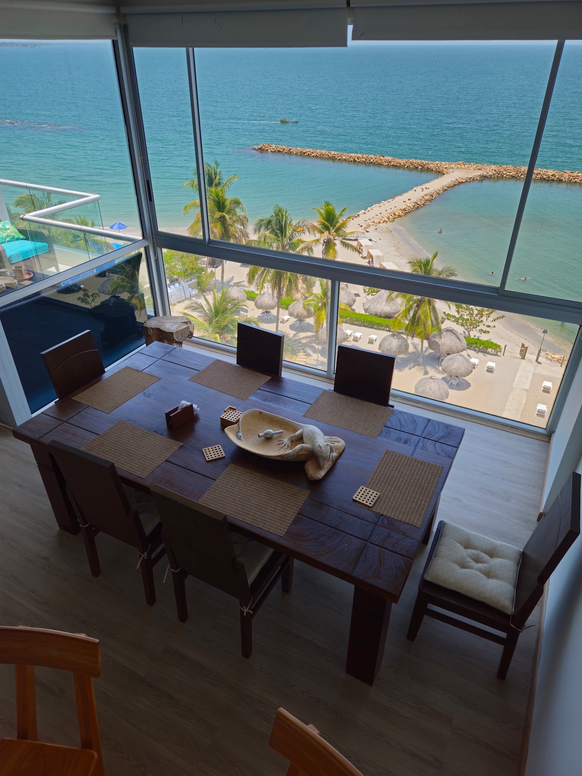 Escápate a este hermoso apartamento que combina el confort moderno con la serenidad del mar. Contamos con una cocina totalmente equipada con todos los utensilios necesarios para preparar desde un desayuno tropical hasta una cena gourmet, un barril que le permitirá disfrutar de un buen asado con vista al mar y demás comodidades pensadas tanto para paseos en familia como entre amigos.