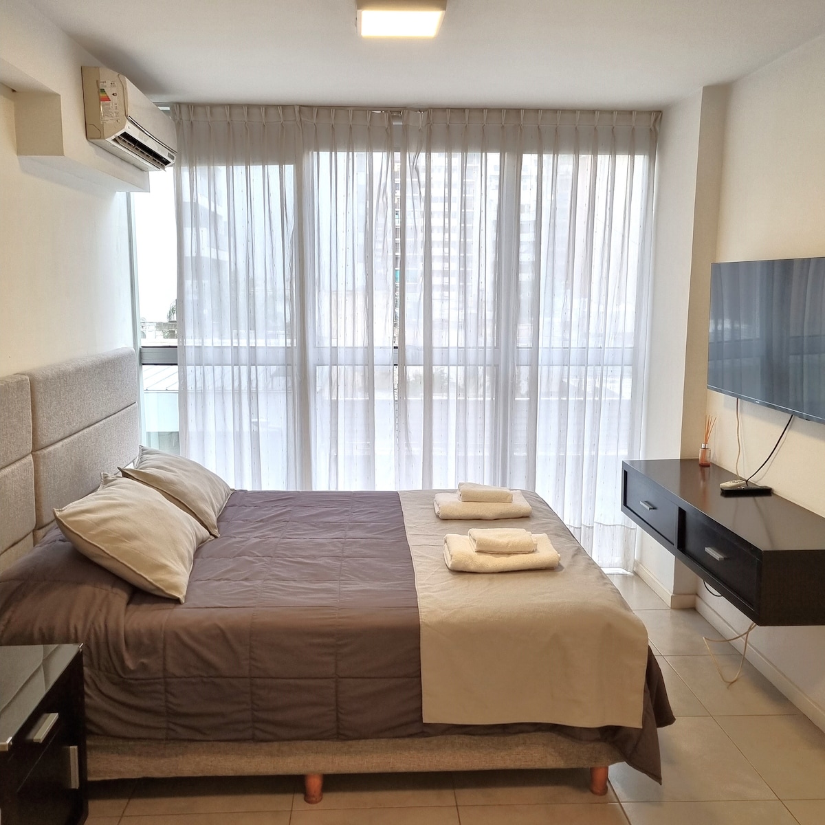 Disfruta de la comodidad y tranquilidad de este depto de 1 dormitorio, diseñado para ofrecerte una estadía placentera. Totalmente equipado, moderno y de fácil acceso, es ideal para turistas, viajeros de negocios o parejas. Espacio apto hasta 3 personas: habitación con cama doble, sofá cama en el living y aire acondicionado en ambos ambientes. Ubicación privilegiada en el Centro de Córdoba, se puede llegar caminando a: ✅ Cañada ✅ Hotel Quinto Centenario ✅ Patio Olmos ✅ Güemes ✅ Nueva Cba