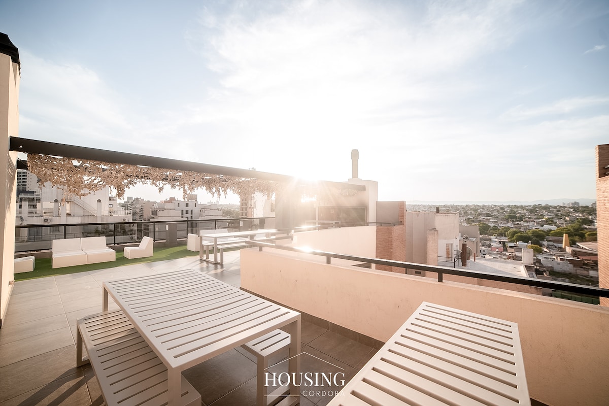 Brand new apartment with pool, gym, SUM and terrace with grills in the heart of Nueva Córdoba! With all the comforts so that you have an excellent stay. Equipped kitchen, coffee maker, toaster, washing machine, smart TV, wifi, air conditioning, heating. Bedding included (the stay includes 1 bath towel per person and 1 hand towel per group).