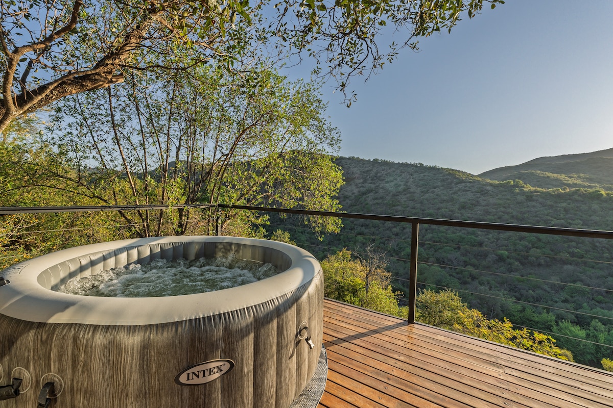 ☞ Vista panorámica a las sierras y al río ☞ Jacuzzi y reposeras para relajarse al aire libre ☞ Amplio deck con living exterior para comer y disfrutar del entorno ☞ Parrilla y cochera techada ☞ Cama de dos plazas con sábanas, toallas de primera calidad, frazadas extras y kit de limpieza básico ☞ Aire acondicionado y calefacción por conductos tipo split ☞ Televisor y equipo de sonido ☞ Ubicado en un loteo privado de La Paisanita, rodeado de monte nativo