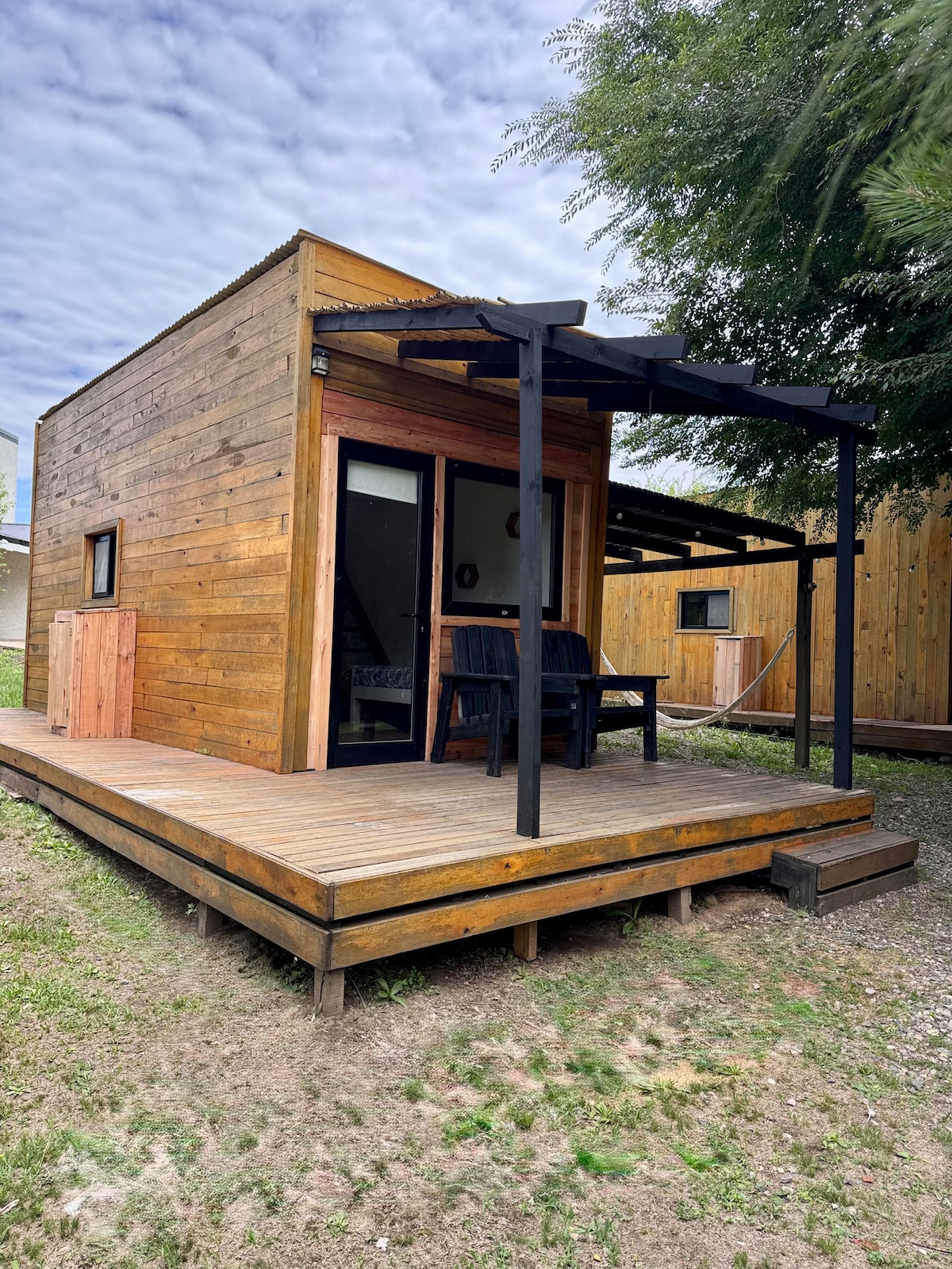 Cabaña- Tiny house Apta para 2 personas. (Consultar para 3 personas) Totalmente equipada. Es un precioso lugar, muy acogedor, para venir a relajar con tu pareja o par de amigos. A tan solo metros del rio, el predio es muy amplio, hay espacios muy cómodos para estar al aire libre y disfrutar de la naturaleza.