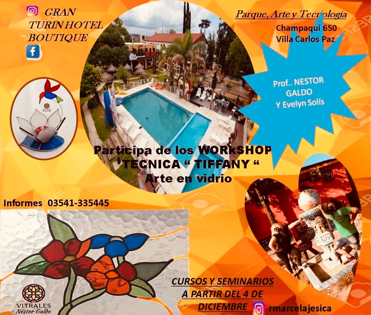 Hotel colonial del 1942 Que brindará un servicio nuevo para hospedar al huésped; fusionando el confort hotelero y su gastronomía propia con clases personalizadas de la técnica TYFFANI y clases de Aikido. Elegís tu pieza a trabajar y aprenderás de la mano del mejor maestro de Vitraux de la Provincia de Córdoba: Néstor Galdo.seminarios de 3 días/2 noches con todo incluido. No te lo pierdas anótate ya y forma parte de esta propuesta genial!!!