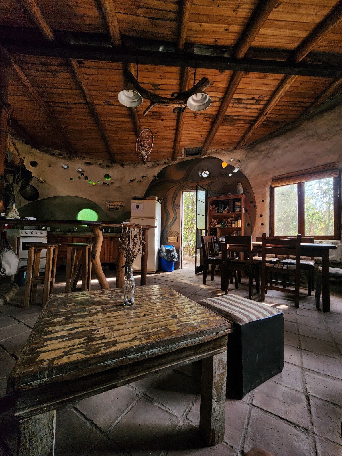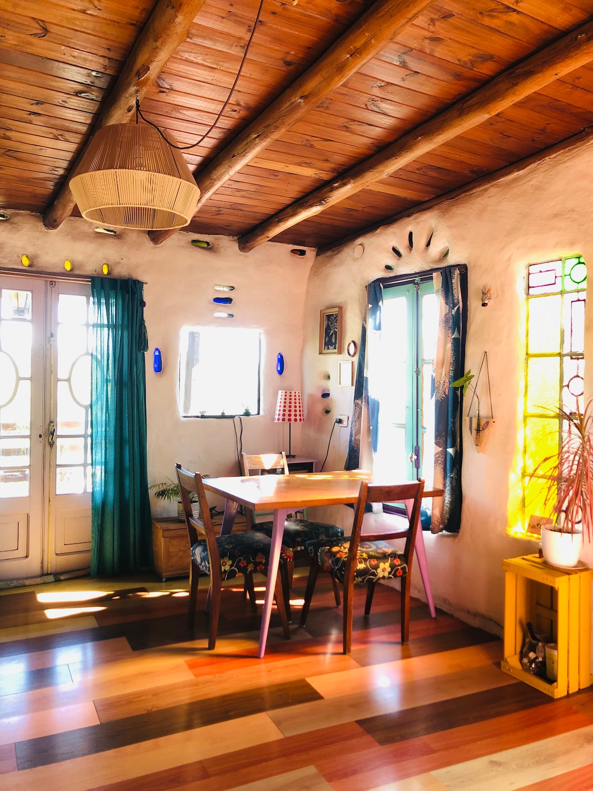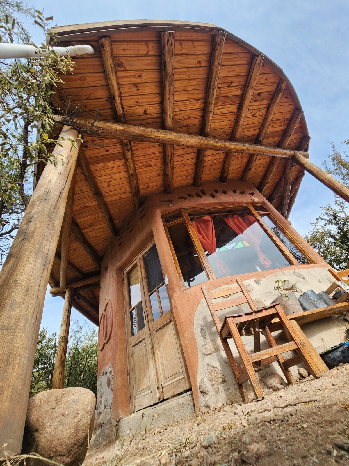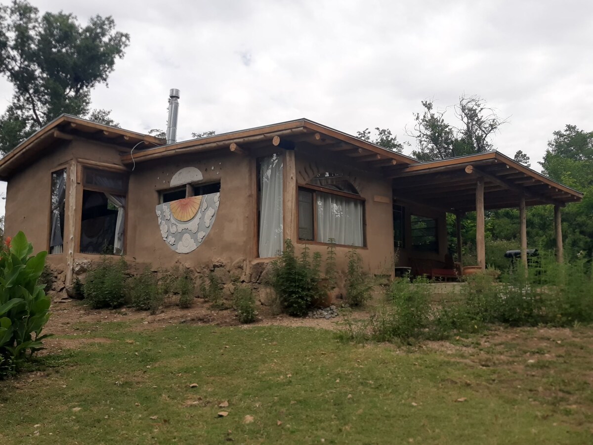 Es una bella casita de barro donde vivo durante el año y que construí con mis propias manos y mucha dedicación . Está ubicada al norte de la provincia de Córdoba en el Valle de punilla en San Esteban, un pueblito muy tranquilo de poquita gente muy agreste y rodeado de sierras, muy hermosos paisajes en todas las direcciones, con un clima muy amable en verano y una naturaleza abundante.
