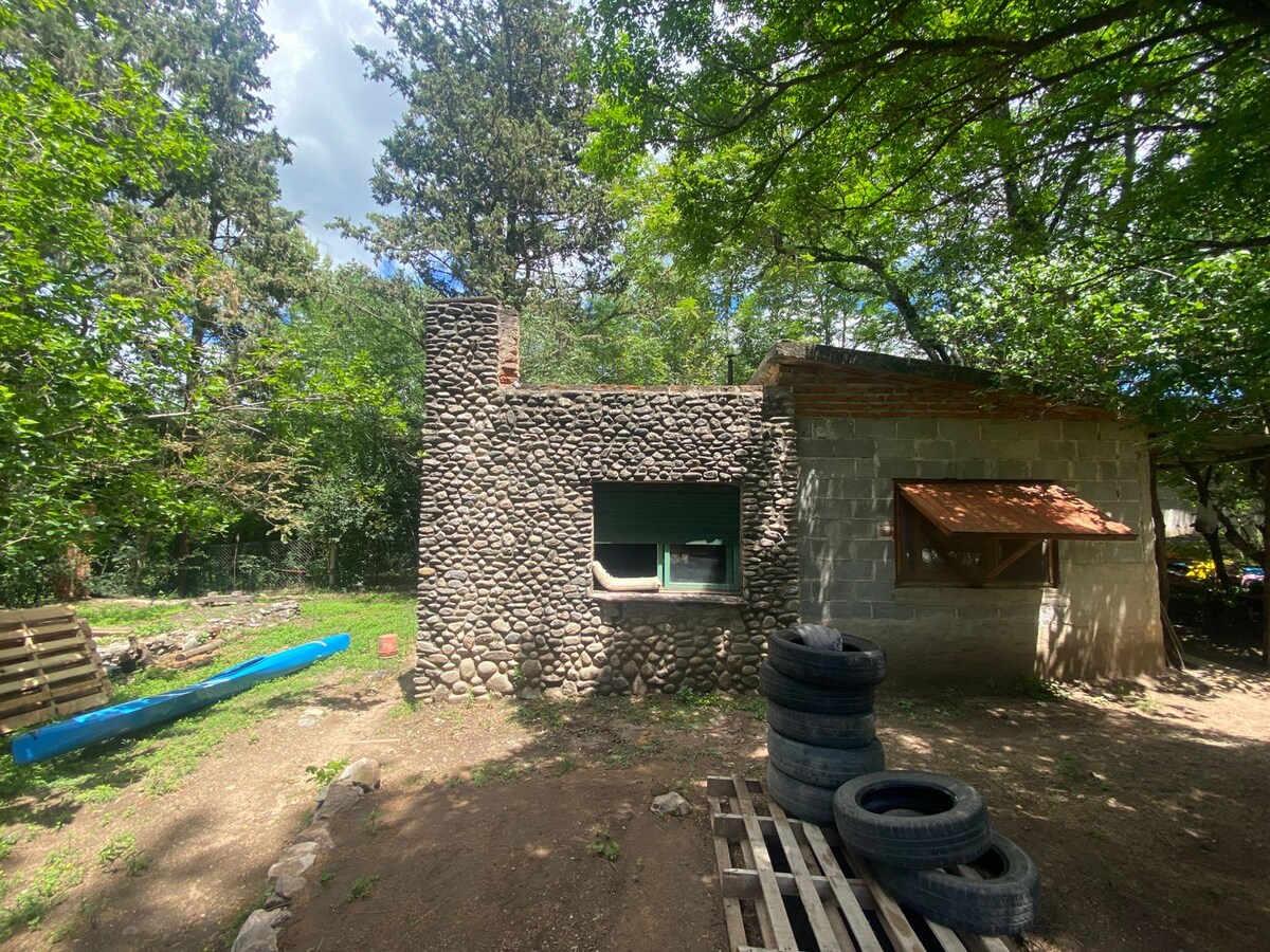 Es una casa con detalles por donde mires,esta llena de colores y buen gusto. la casa cuenta con 2mil metros cuadrados de parque donde habitan diferentes aves y su techo es solo estrellas. se puede bajar caminando al lago,desde casa se aprecia el lago con sus montañas. En medio de un ambiente natural y a 80 mts del lago de embalse a 10 minutos de ríos como quillinzo,arroyo corto,sta rosa y amboy. lugar especial para deportes acuáticos, trekking La tranquilidad y la seguridad abunda.