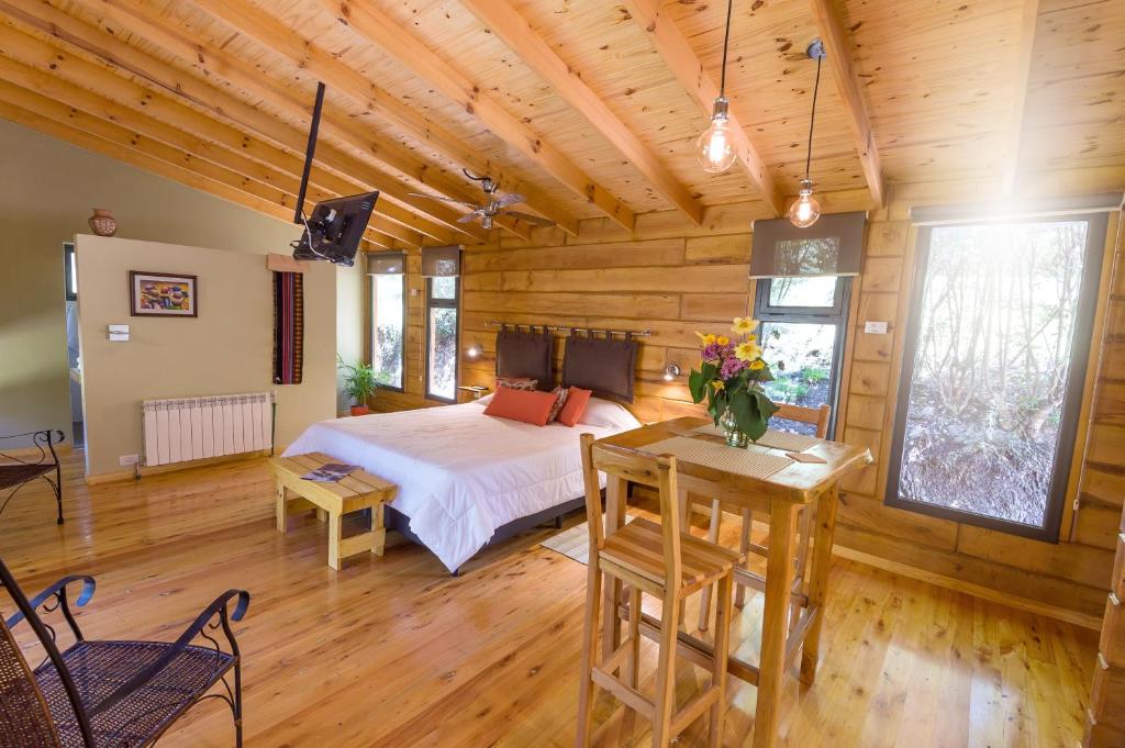 El alojamiento cuenta con un amplio parque, pileta con sector bajo para niños y quincho común totalmente equipado. La suite doble (single o matrimonial) ofrece deck privado con juego de jardín y salida directa al parque. Dispone de heladerita, microondas, vajilla básica, TV con DirecTV y mesa con sillas para comer (sin posibilidad de cocinar). Incluye ropa blanca, elementos de aseo, desayuno y limpieza diaria. Tiene ventilación mecánica y calefacción por tiro balanceado.
