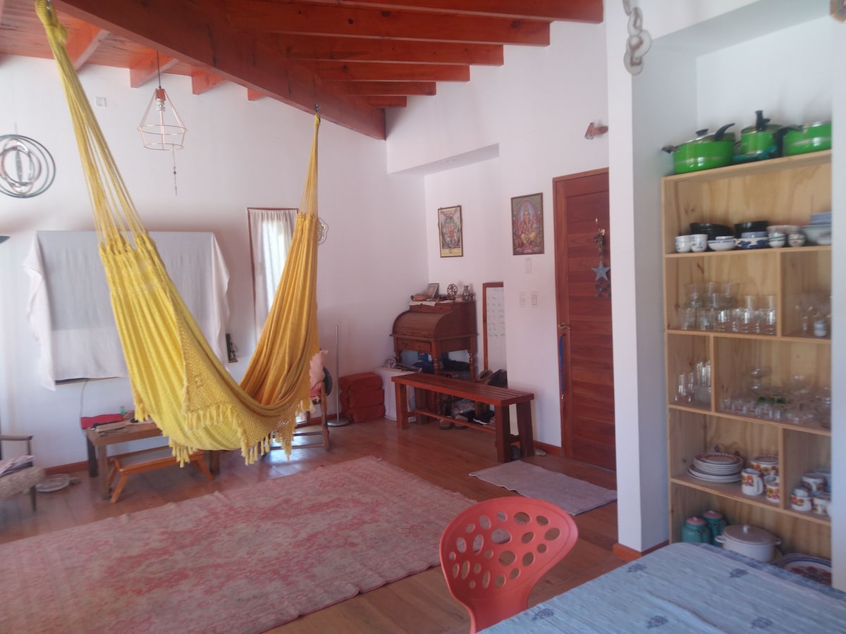 Es una preciosa casa hecha y restaurada por artistas. Te va a encantar mi lugar debido a las zonas exteriores, El vecindario y la luz. Mi alojamiento es bueno para parejas, aventureros y familias (con hijos). Contamos a su vez con una galeria y tienda de arte, donde podes venir a ver la muestra vigente en el momento de tu visita y conocer la tienda de artistas locales, donde podes comprar obras de exelentes artistas y contribuir al apoyo de la cultura local.