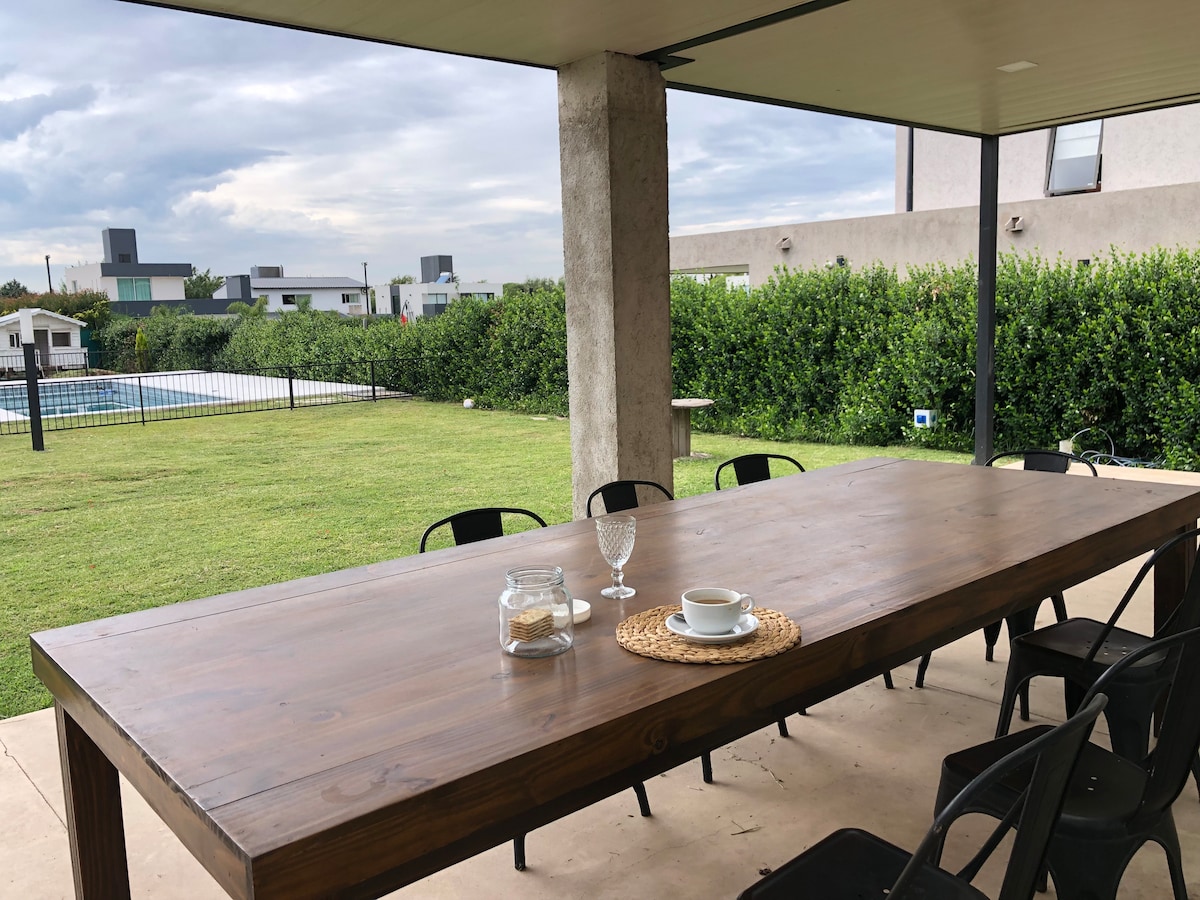 Casa en barrio cerrado. En la zona de Manantiales, a 15 min. del centro y acceso por circunvalación. Completamente equipada, vajilla, ropa blanca, wifi y aires acondicionados en todos los ambientes.