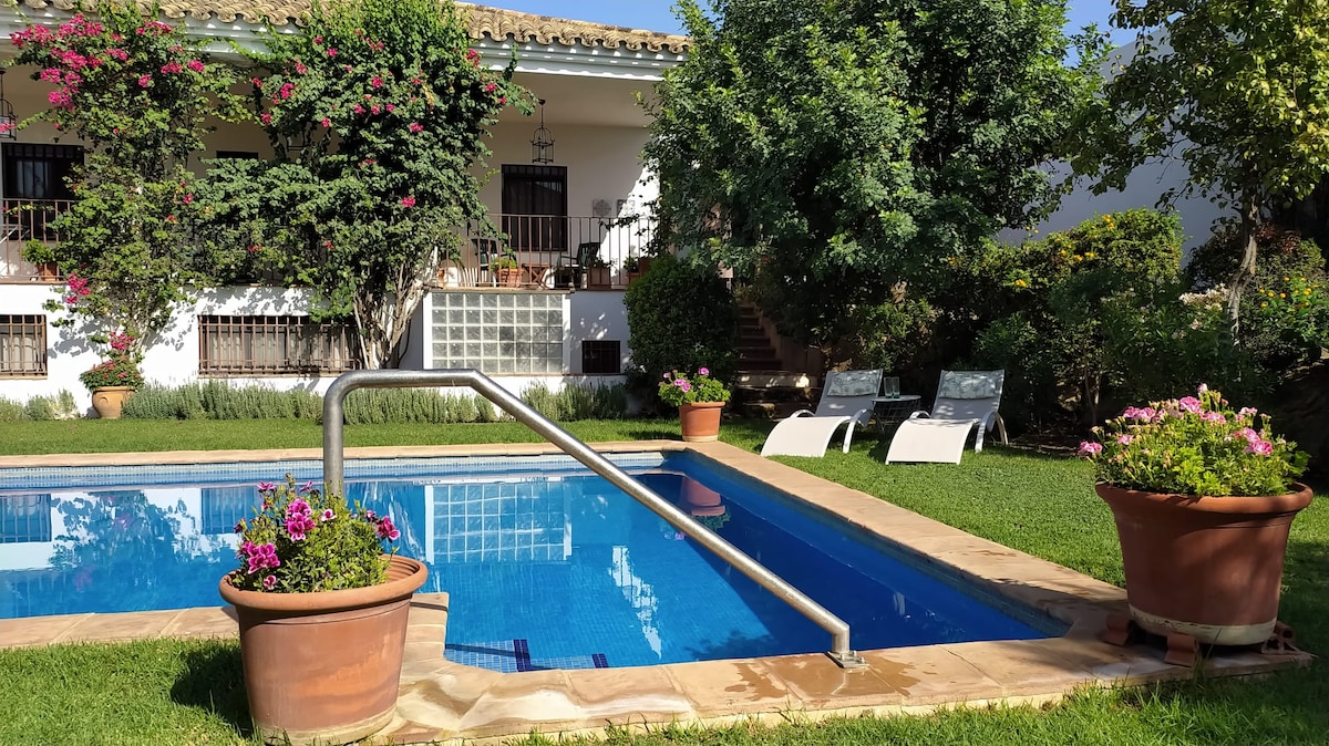 En este alojamiento se respira tranquilidad: ¡relájate con toda la familia ,después de hacer turismo, en esta acogedora casa con piscina, a 15 minutos. del centro de la ciudad en coche ,y con farmacia ,supermercados y centros comerciales en la zona, dispone de vivienda de 70 metros cuadrados con amplio dormitorio, aseo y amplio salón con tv ,wifi ,y sofá cama. disfruta de la mejor temperatura en verano y de los inviernos soleados de Córdoba, puedes ir a pie a rutas de senderismo y bus en calle.