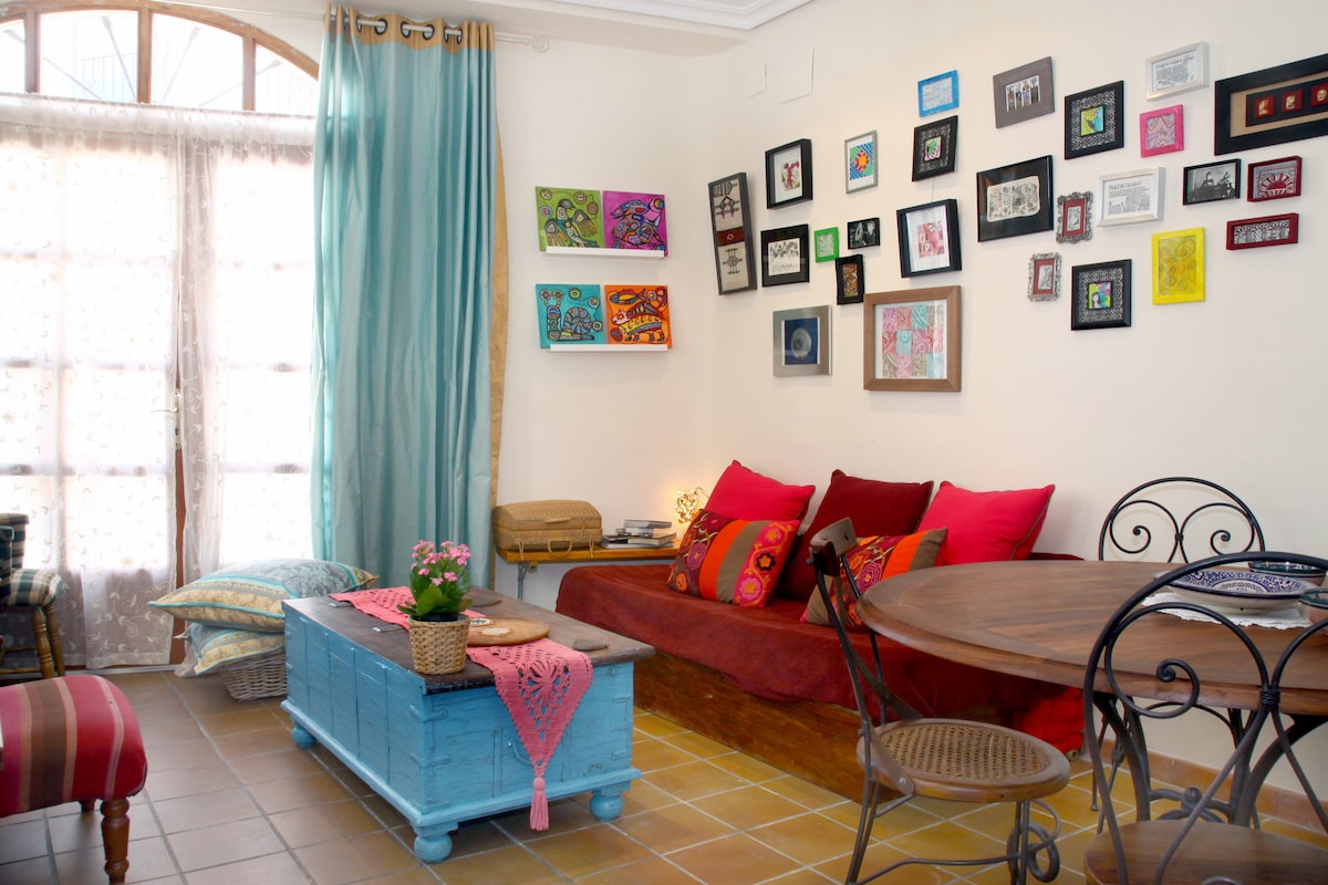 Maison unifamiliale très bien situé au centre historique et très lumineuse, avec solarium, parfait pour famille de 4, prés des centres d’intérêt, des restos, bars, épiceries et boulangerie... Vues sur les toits de la vieilli ville, prés du guadalquivir (fleuve), vous pouvez dormir sous les étoiles à travers la lucarne sur le lit double. Rénovation récente avec des artisans (fer, carrelages ...) et mes propres créations. Parking gratuit de l'autre côté du fleuve et payant dans le parking Ribera.