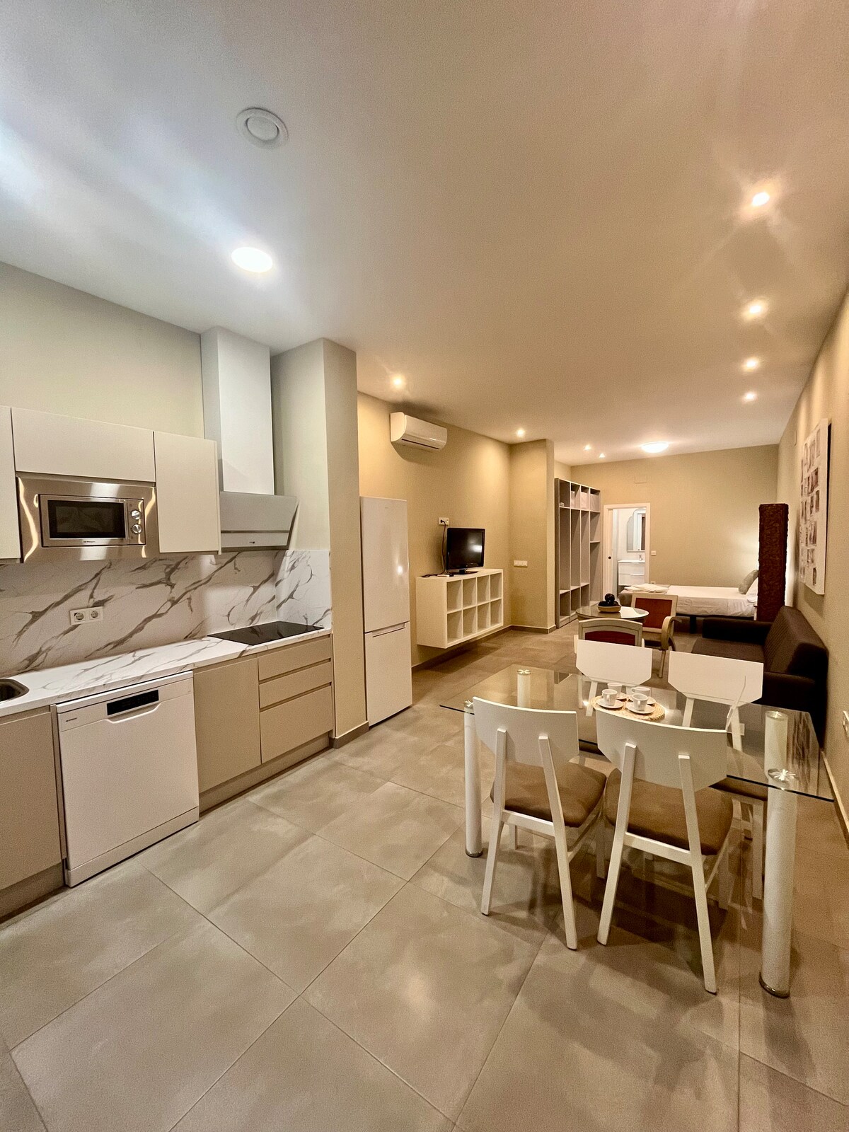 Confortable LOFT a las puertas de la judería a escaso 300 metros de la Mezquita, a su entrada aparece la cocina comedor con su menaje de cocina completa, frigorífico, micro ondas, cafetera, tostador y vitro cerámica. Amplio cuarto de baño con inodoro, lavabo, ducha Y lavadora, cama de matrimonio de 1.50 metros y sofá con Tv, internet, aire acondicionado, con vista a los jardines de Avd. Doctor Fleming, puerta de entrada a la judería. PARQUING INCLUIDO necesario reservar para su confirmación.