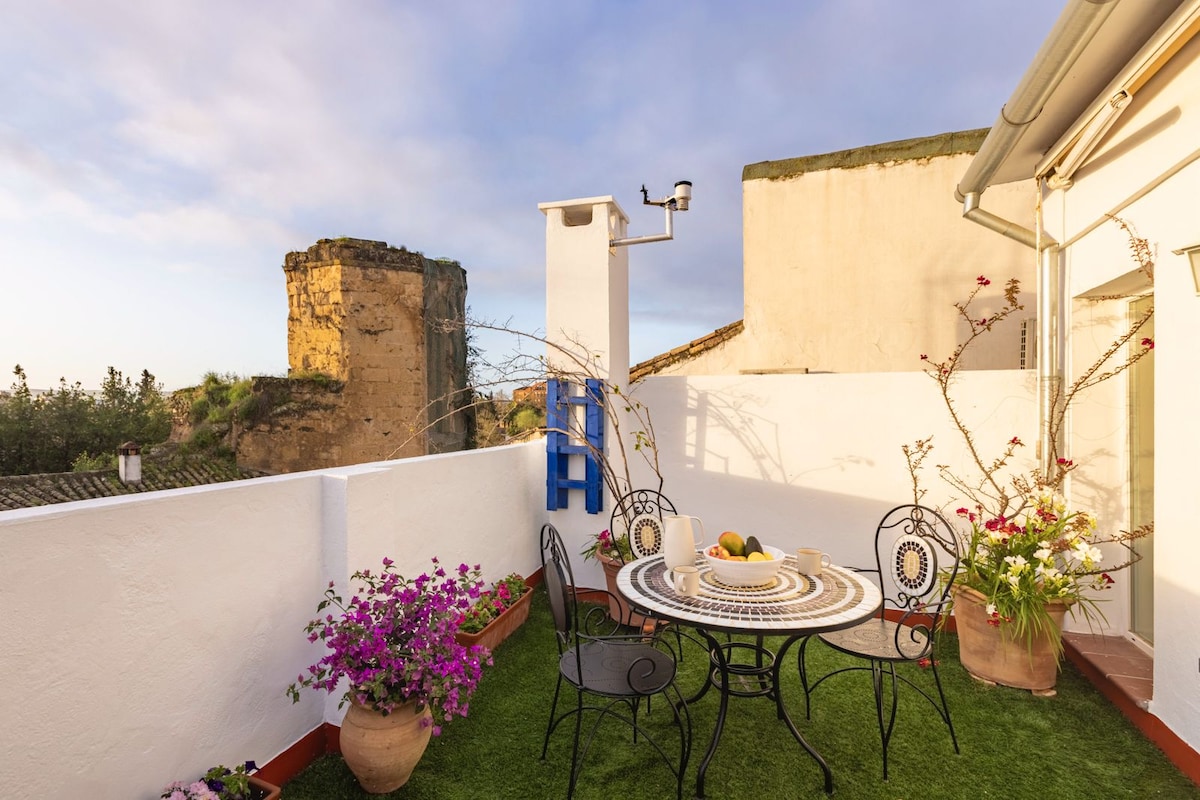 Maison unifamiliale très bien situé au centre historique et très lumineuse, avec solarium, parfait pour famille de 4, prés des centres d’intérêt, des restos, bars, épiceries et boulangerie... Vues sur les toits de la vieilli ville, prés du guadalquivir (fleuve), vous pouvez dormir sous les étoiles à travers la lucarne sur le lit double. Rénovation récente avec des artisans (fer, carrelages ...) et mes propres créations. Parking gratuit de l'autre côté du fleuve et payant dans le parking Ribera.
