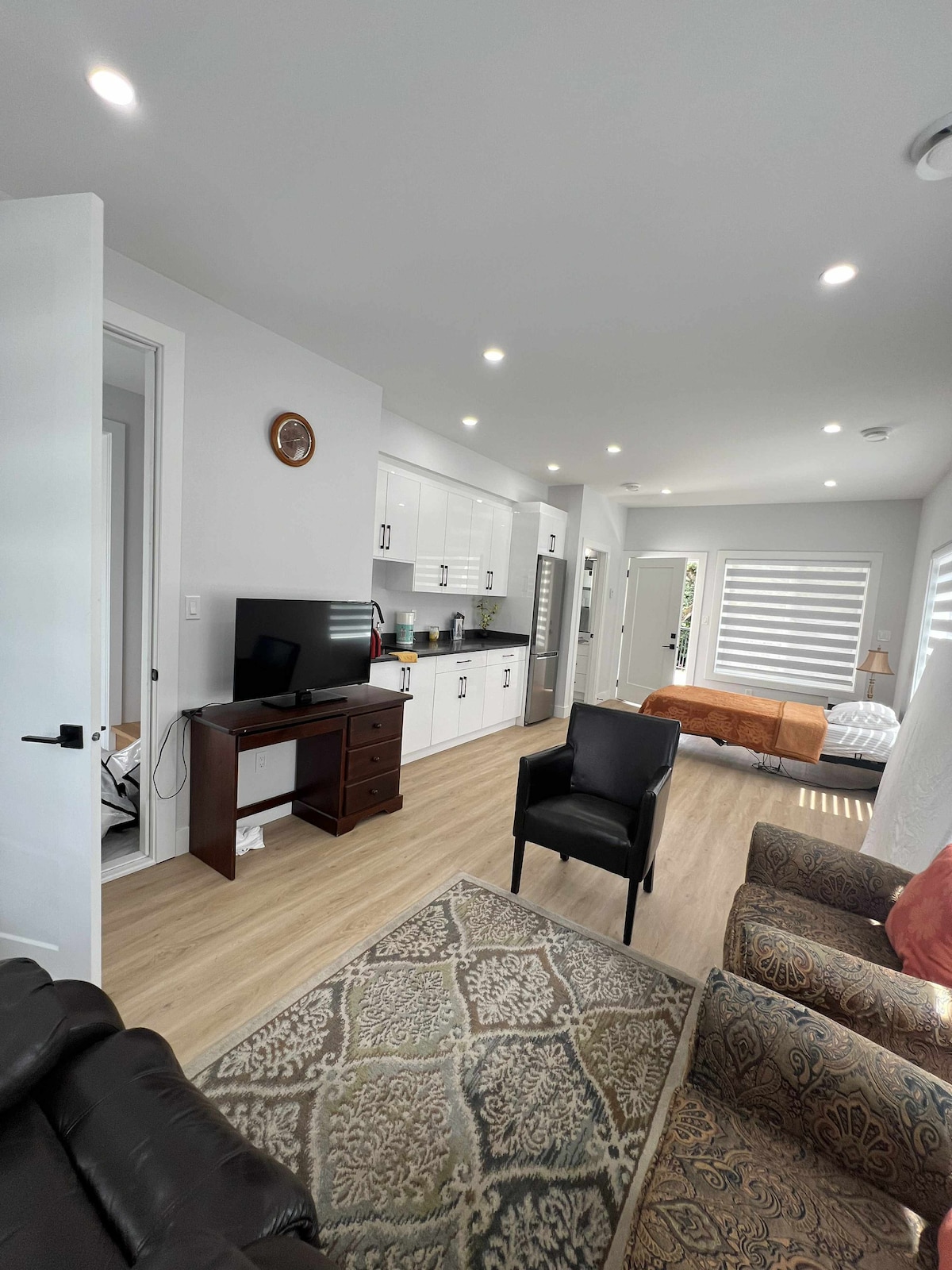 Discover a modern oasis in Happy Valley, Langford! Our private suite, with a separate entrance, offers comfort and convenience, just 5-10 minutes from the ocean, parks, landmarks, trails, and local stores and restaurants. Enjoy a cozy living room, fully equipped kitchen, comfortable bedroom, in-suite laundry. Relax in the spacious shared backyard with a serene farm view. With all high-quality furniture and thoughtful touches, this is your ideal getaway. Book now for an unforgettable stay!