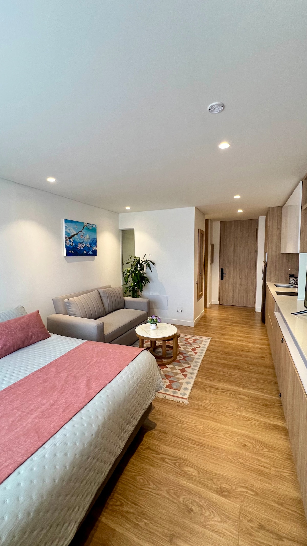 Modern studio apartment located just 15 minutes from the airport, featuring ideal amenities for short or long stays. It includes a full kitchen, double bed, sofa bed, coworking and leisure areas, laundry facilities. Enjoy local dining and explore nearby shopping centers. Just 5 minutes from Corferías and the American Embassy, with easy access to major roads. It’s also close the center of Bogotá and popular tourist attractions, as well as Movistar Arena and Estadio el Campin.