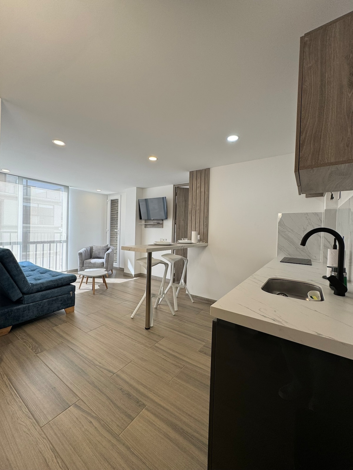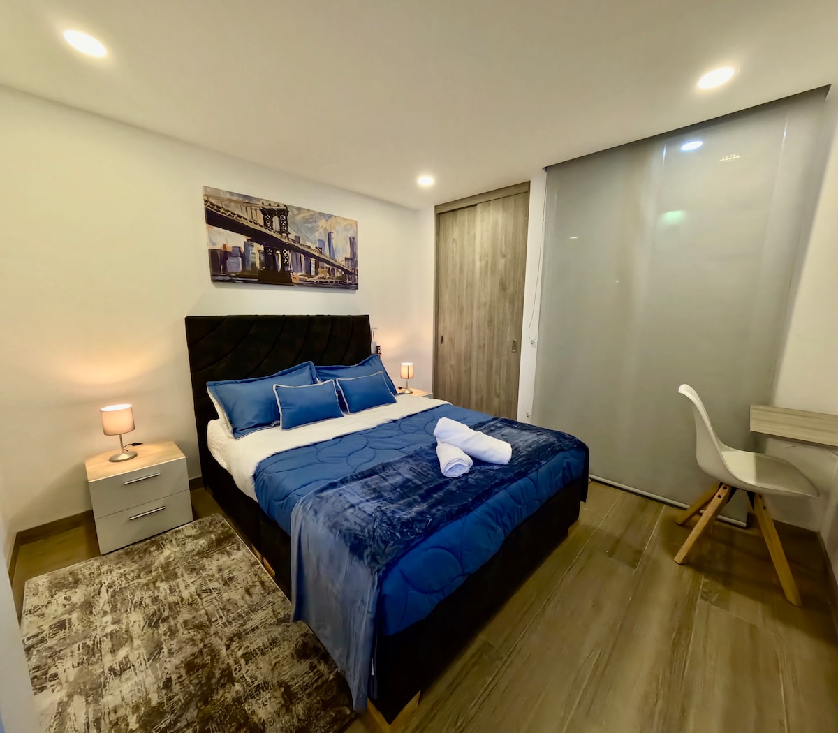 Relax in a modern and cozy loft — spotless and equipped with everything you need to feel at home. It features fast WiFi, a fully equipped kitchen, and a very comfortable bed, ideal for short or long stays. The building includes a shared rooftop terrace with an urban view, coworking spaces, and 24/7 reception. Located in Chapinero, a central and well-connected area of Bogotá. You’ll find great cafés, restaurants. Attentive and friendly communication throughout your stay.