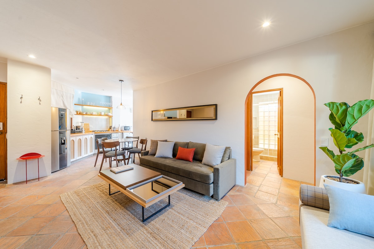 Our stylish 2-bedroom unit offers queen size beds with orthopedic mattresses and high threadcount bed linen, high-speed fiber optic internet, a cozy living room, and private patio with BBQ. Equipped with 3 QLED flatscreen TVs, 2 workstations, gas chimney, and a fully stocked kitchen. Enjoy the 2 beautifully designed bathrooms and amazing interior design. Conveniently located in La Candelaria, close to all the main attractions and restaurants. Book now for the ultimate Airbnb experience!