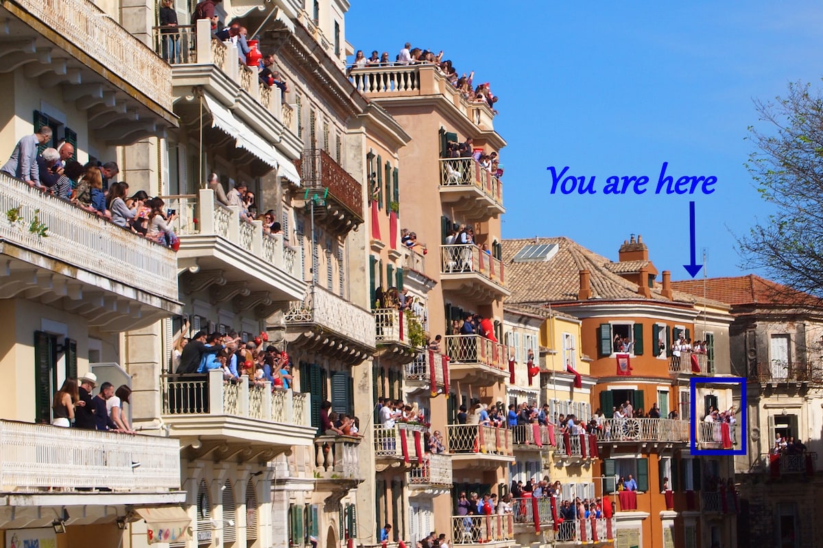 Τraditional 3rd floor (over the ground floor) apartment, without a lift, five min walk from two small beaches of the city. There is a balcony over Platy Kantouni, in one of the most beautiful neighborhoods: Porta Remounta. Just a few minutes' walk away: Liston, Old Fortress, big squares (Spianada), theTown Hall square, church Saint Spyridon etc . In the neighborhood there are a tour agency, very good traditional tavern and Italian restaurants and all food shops .