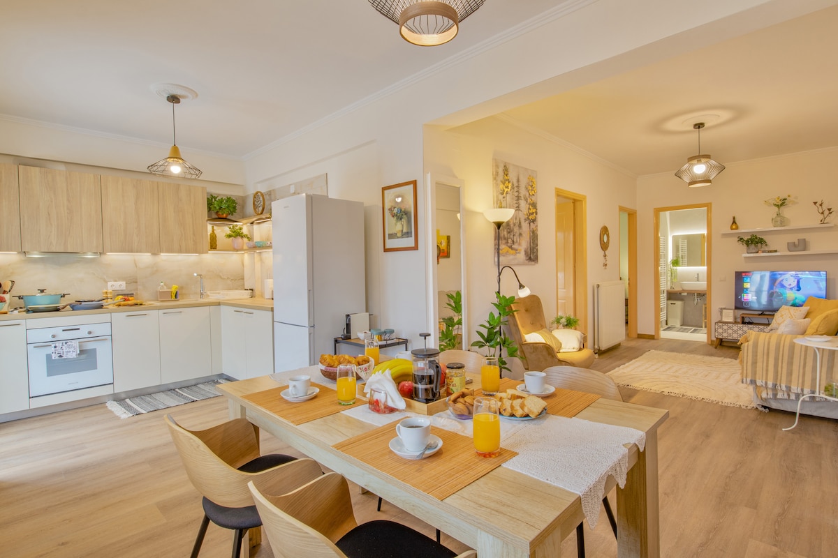 Welcome to Casa di Marina, your elegant retreat in the vibrant heart of Corfu Town. Freshly renovated in 2023, our apartment embodies modern luxury with a hint of coziness that makes it feel just like home. Every piece within Casa di Marina, from the high-quality furniture to the plush mattresses, is chosen with comfort and style in mind, ensuring a stay that’s as restful as it is visually stunning. The apartment is located on the mezzanine floor.