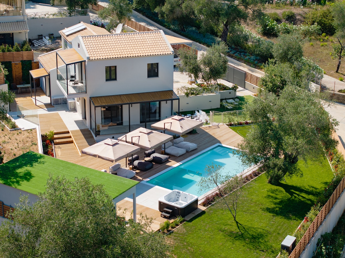 Villa Eleganza is an exquisite retreat nestled within the enchanting Corfuville, a collection of four private villas. Situated in the picturesque island of Corfu, this heaven of tranquility is conveniently located just 10 minutes from the vibrant city center. The villa can accommodate up to 8 guests, making it ideal for large families and groups of visitors. The villa consists of 3 bedrooms with three bathrooms, full equipped kitchen large heated pool. Finished construction 2025.