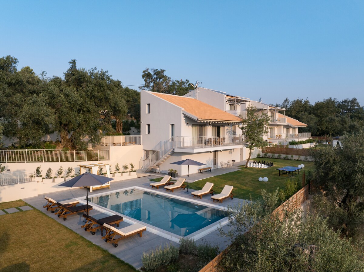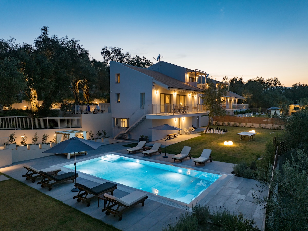 Villa Incanto is an exquisite retreat in enchanting Corfu. On Corfuville resort you will find a collection of four private villas. This haven of tranquility is located on the picturesque island of Corfu, conveniently located just 10 minutes from the bustling town centre. The villa sleeps up to 8 people, making it ideal for large families. The villa consists of 3 bedrooms with three bathrooms, large heated pool, Jacuzzi, Cinema room. Construction 2024.