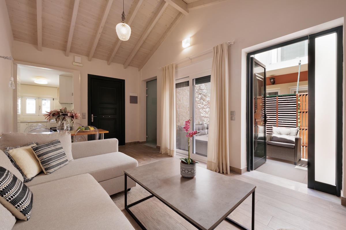 "Viaggio" is one of the very few surviving low rise terraced houses of the Venetian period in the whole of the historical centre of Corfu Town. Situated in a picturesque alley a few steps from Spianada Square, everything the Old Town has to offer is quite literally on your doorstep. A home of generations innovatively restored into a luxurious yet home for visitors who seek to experience the island as locals, without compromising on quality. The apartment is located on the ground & 1st floor.