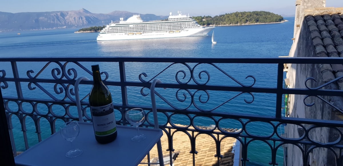 Our apartment is located inside the Old Town of Corfu, next to the Byzantine museum, with a breathtaking view of the Ionian Sea. Το σπίτι βρίσκεται στο κέντρο του ιστορικού ιστού της πόλης σε ένα σημείο με εκπληκτική θέα προς τη θάλασσα. Βρίσκεται δίπλα από το Βυζαντινό μουσείο της Αντιβουνιώτισσας και σε μικρή απόσταση με τα πόδια από τα σημαντικότερα μνημεία και μουσεία της πόλης.