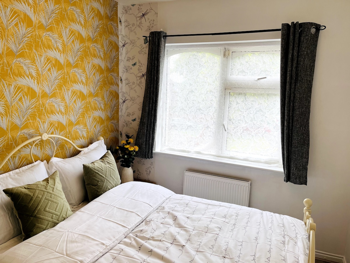 This bedroom includes a Queen size double bed and more as shown in the photographs. The Bathroom (with bath and shower) near the Bedroom is shared between the two guest rooms. A generous self-service breakfast in the large Dining Room is included. An extra bed can be added to the room for a third guest if needed. The house is child friendly and with a crib/cot if needed for an infant. There are private parking spaces (with an EV charger) and bus stops are within a short walking distance.