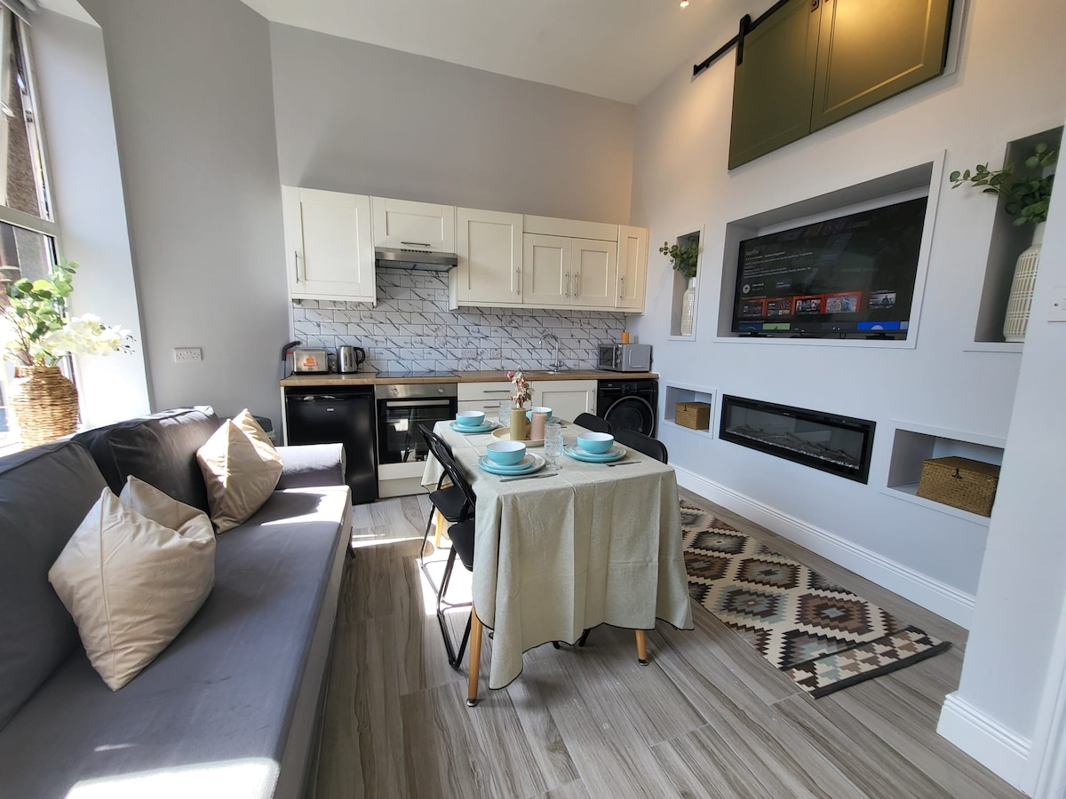 Brocade&Lime is a beautifully converted Victorian shop situated in the historic centre of Cork, Ireland. The property layout spans 4 floors and includes a quirky shop lobby,spacious kitchen/diner with adjoining TV room,Champagne Bar,Billiards room,Mezzanine Parlour and Roof Terrace overlooking the river. We can comfortably accommodate 7 guests in 3 Bedrooms. WiFi/Smart TV/Bluetooth speakers throughout. Private secure parking space for 1 car situated across the bridge-1 minute away from property.