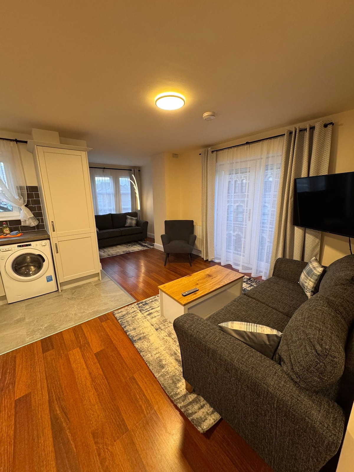 Stylish 2-bedroom apartment located in the heart of Kinsale with free private parking on site. The apartment has a nice bright open plan lounge and dining area and a kitchenette with fridge, microwave, cooker, Nespresso coffee machine and dishwasher.Each bedroom has a private bathroom - one with Victorian tub and separate shower and the other with supersize shower.