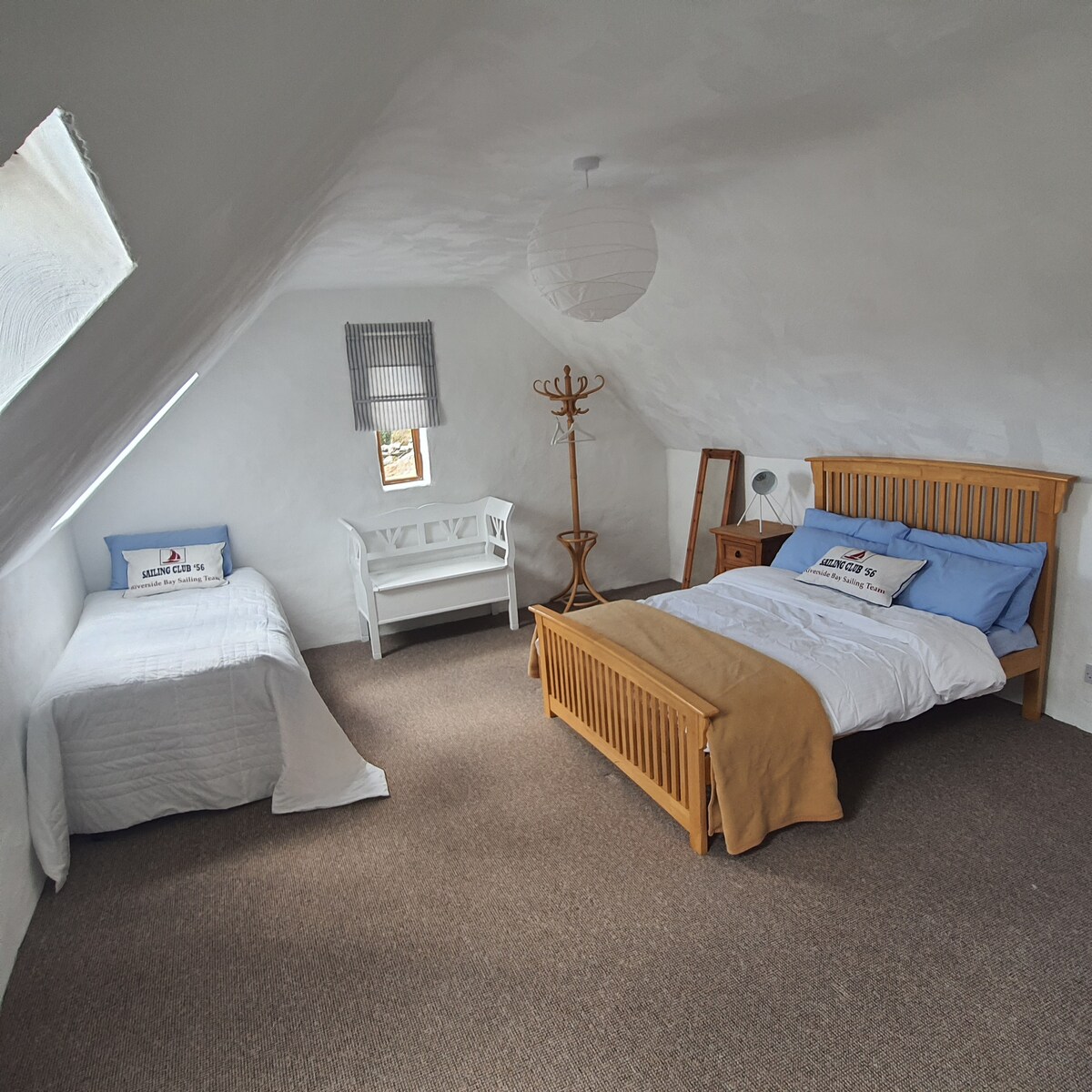 Located on the Sheeps Head Peninsula this is an ideal location to explore all of West Cork. It is a 5 minute walk to the pier, Heron Gallery Cafe and Gardens, Arundels by the Pier and the Tin Pub. On our doorstep are fantastic hill walks along the renowned Sheeps Head Way as well as countless coves and strands for swimming and exploring. Basic kitchen facilities with hotplate, microwave, fridge, kettle and toaster, sitting area, Free WIFI, steep loft stairs, double and single bed, wet room.