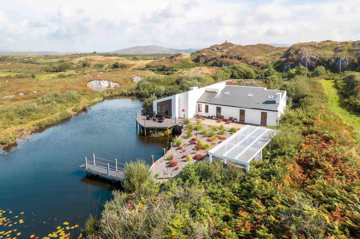 Escape to The Hidden Haven at Derry Duff; a unique, stylish, luxury farm-stay lodge, in a secluded corner of our organic West Cork hill farm, just 20 minutes from Bantry and Glengarriff. We designed this boutique, eco retreat to welcome guests to enjoy panoramic mountain views, the wild landscape, a lakeside hot tub, peace, calm and our organic produce. The Hidden Haven offers a romantic farm-stay experience with the space to reconnect, unwind, and rest surrounded by the quiet rhythm of nature.