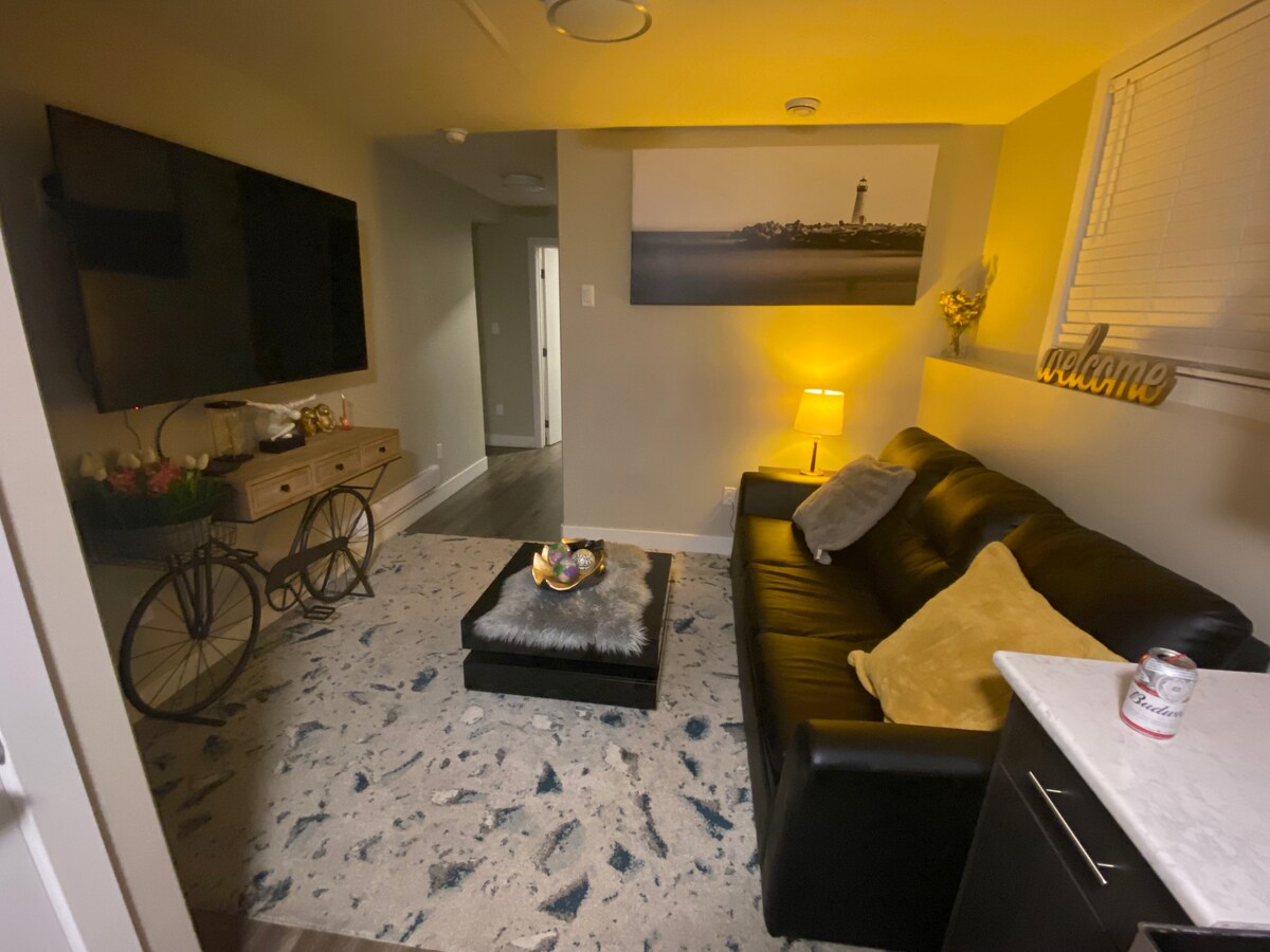 Modern, bright, and newly updated unit perfect for short or long stays. Enjoy a stylish living area, clean bedrooms, and a fully equipped kitchen with modern finishes. Large windows bring natural light throughout. Free parking, fast WiFi, and a quiet, convenient location close to shops and transit. Ideal for families, workers, and travelers looking for comfort, cleanliness, and a cozy home-away-from-home