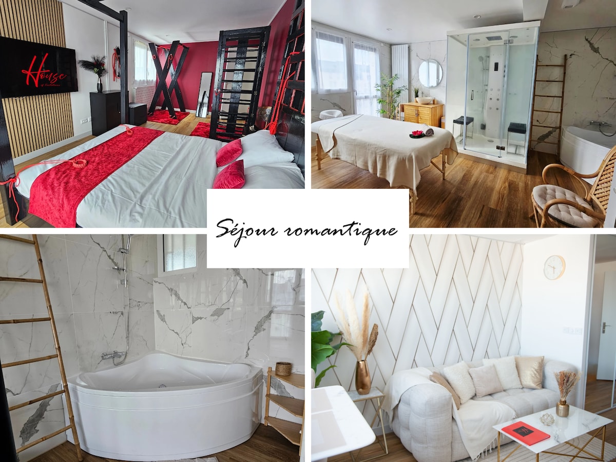 Venez découvrir notre appartement haut de gamme, situé dans le Val d'Oise. Il a été conçu sur mesure pour une expérience hors du commun afin de pouvoir réaliser vos fantasmes les plus endiablés. Il vous permettra de vous évader pour une nuit ou un weekend afin d’oublier votre quotidien ! Envie de vous faire plaisir et de surprendre votre partenaire ? A votre disposition un lit Queen Size, une baignoire romantique, une douche hammam, une table de massage, des équipements et accessoires BDSM
