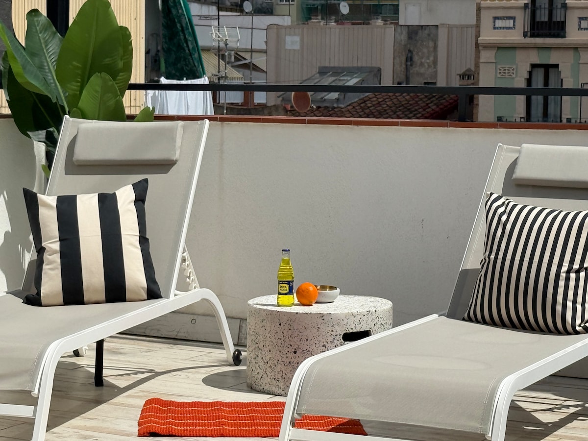 Welcome to "Little Barrio", my boutique rooftop apartment with its private terrace. Overlooking city, Sagrada Familia and mountains. In a modernist building with concierge. Next to iconic Passeig de Gràcia, Plaça de Catalunya and "La Rambla". - Not suitable for party groups/guests. - Family friendly: Pack n Play, Highchair etc - Discover also our own local guides on our website 'Homecelona Apartments' - Tourist Tax due separately: 6.25€/night/guest (>16 years) max 7 nights.