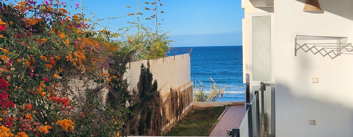 Willkommen, Marhaban, Bienvenue und Welcome! Das im maurischen Stil erbaute Haus liegt am Hang direkt an der Atlantikküste. Im oberen Stockwerk befinden sich 2 Apartments mit Duschbad und Terrassen, im unteren Stockwerk Küche, Schlafzimmer, Bad und Wohnzimmer mit Kamin. Zwei Terrassen mit Garten münden auf den glatten Felsen. Zum hauseigenen Strand sind es nur 3 Gehminuten. Je nach Wellengang kann man auch direkt vorm Haus ins Wasser springen.