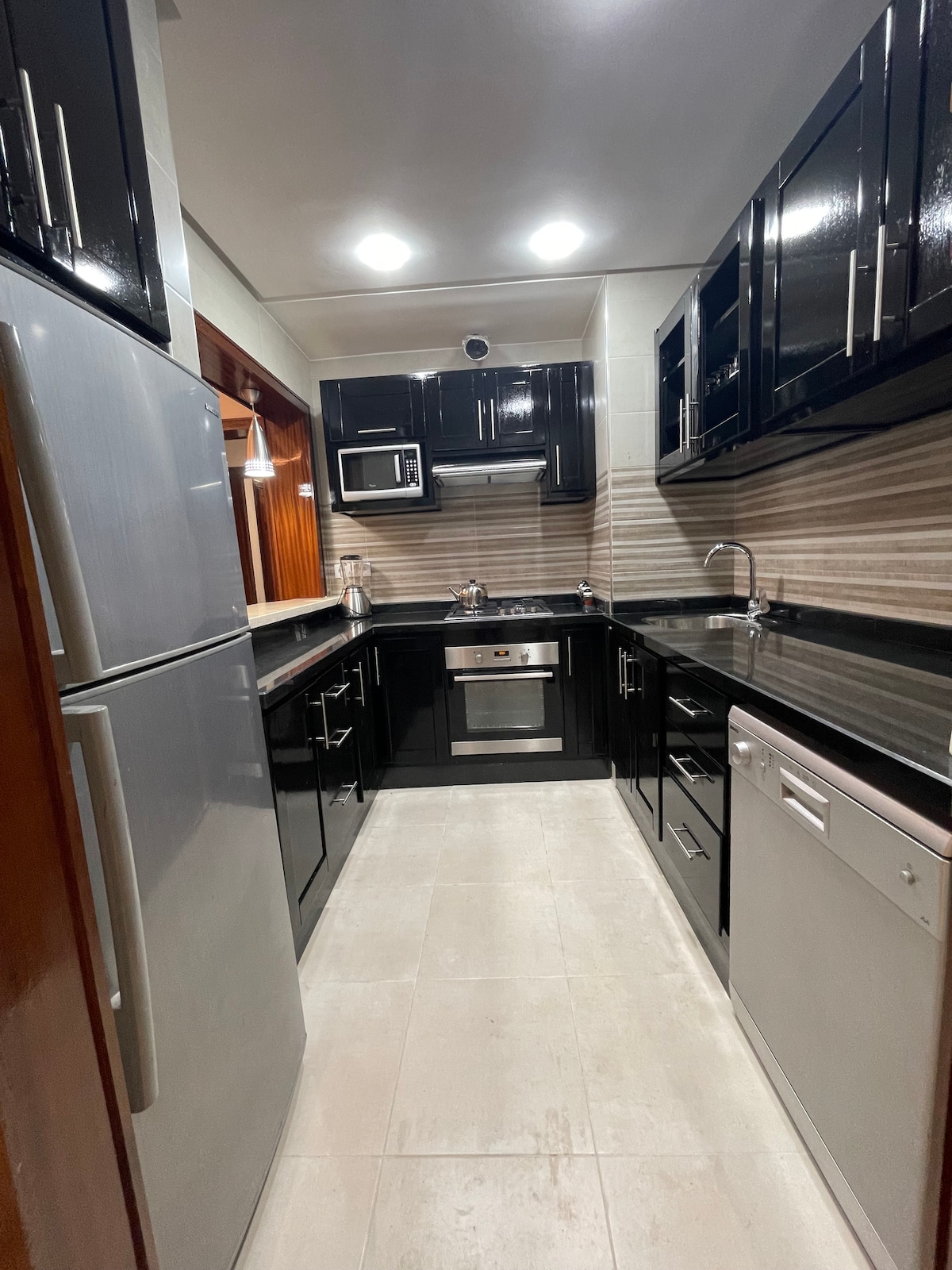 “The apartment is on the second floor, and the building is equipped with an elevator. It is comfortable for the whole family, with two rooms, each having its own bathroom, as well as a separate bathroom. The kitchen is fully equipped. We have a sea view, and the location is close to everything, including cafes that are within walking distance, as well as large stores for shopping.”