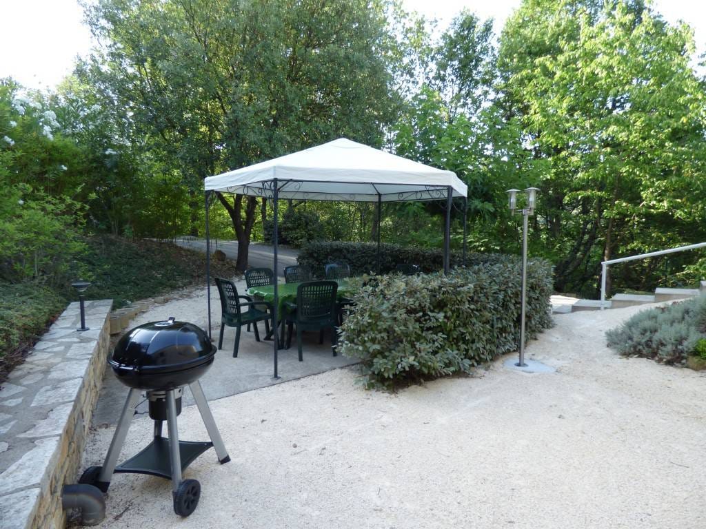 Logement neuf entièrement équipé, terrasse couverte prolongeant sur un extérieur ombragé (salon de jardin, hamac, jeux pour enfants), terrain de pétanque avec sa piscine. Idéalement situé pour les activités comme les randonnées, le trail, le VTT, le canoë etc... 3 min(1,3km) du centre village, 4 min de Sauze (arrivée descente des gorges de l'Ardèche), proche de la grotte Chauvet, pont d'Arc, pont du Gard, Vallée de la Cèze etc.. 45 min d'Avignon(festival), Nîmes(Arène), Valence, 1h30 de la mer.