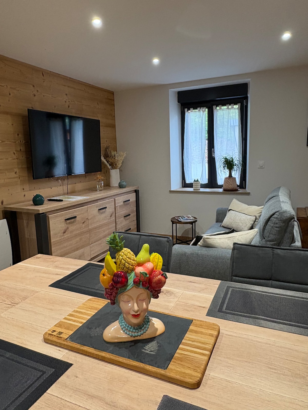 Close to ski resorts and the many activities our beautiful region has to offer (lake, hiking, skiing...): In a quiet, pleasant location, this apartment with its warm, typical atmosphere offers you an entrance hall, a living room with fully-equipped kitchen, two beautiful bedrooms, a shower room with sanitary facilities. Unlimited Internet access, flat-screen TVs, free Netflix for young and old alike, umbrella bed, bed linen + towels and household linen provided.