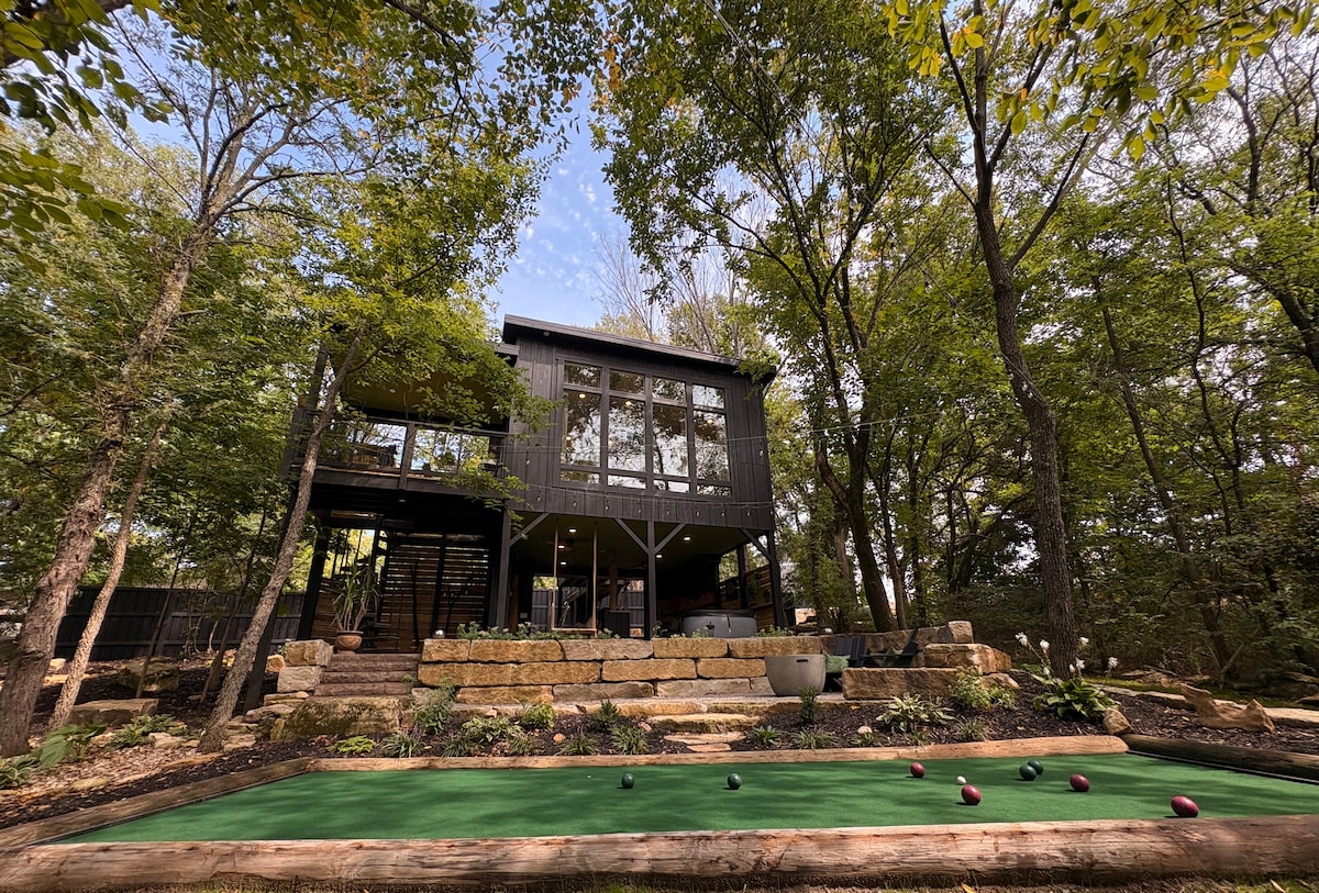 Tucked into a hollow on the eastern edge of Prairiewood's preserve, Cottonwood Suite exudes romance and abundance. Cottonwood has everything you need for a weekend getaway or overnight stay: spacious living quarters, spa-like features including oversized soaker tub, gas fireplace, comfort amenities including hospitality counter with mini fridge and microwave, patio with outdoor seating, and yard with fire pit, hammock, and grill — with easy access to trails, fishing, canoeing, and kayaking.