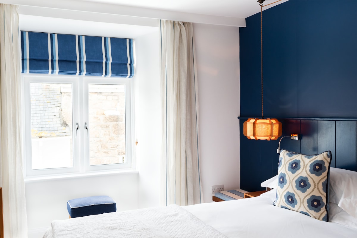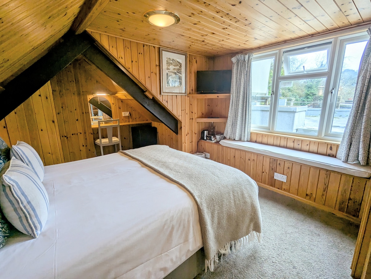 The Terrace Deluxe room is a delightful independent unit from the main building. Overlooking our small rear terrace, it enjoys lovely side views of the harbour. This light room has a separate seating area and an en-suite shower room. King size bed Desk WiFi Mini bar Flatscreen Smart HDTV with Freeview DVD Player iPod docking station Full length mirror Coffee & tea making facilities Neal’s Yard Organic Remedies amenities Hypnos Beds Egyptian cotton bed linen and fluffy towels
