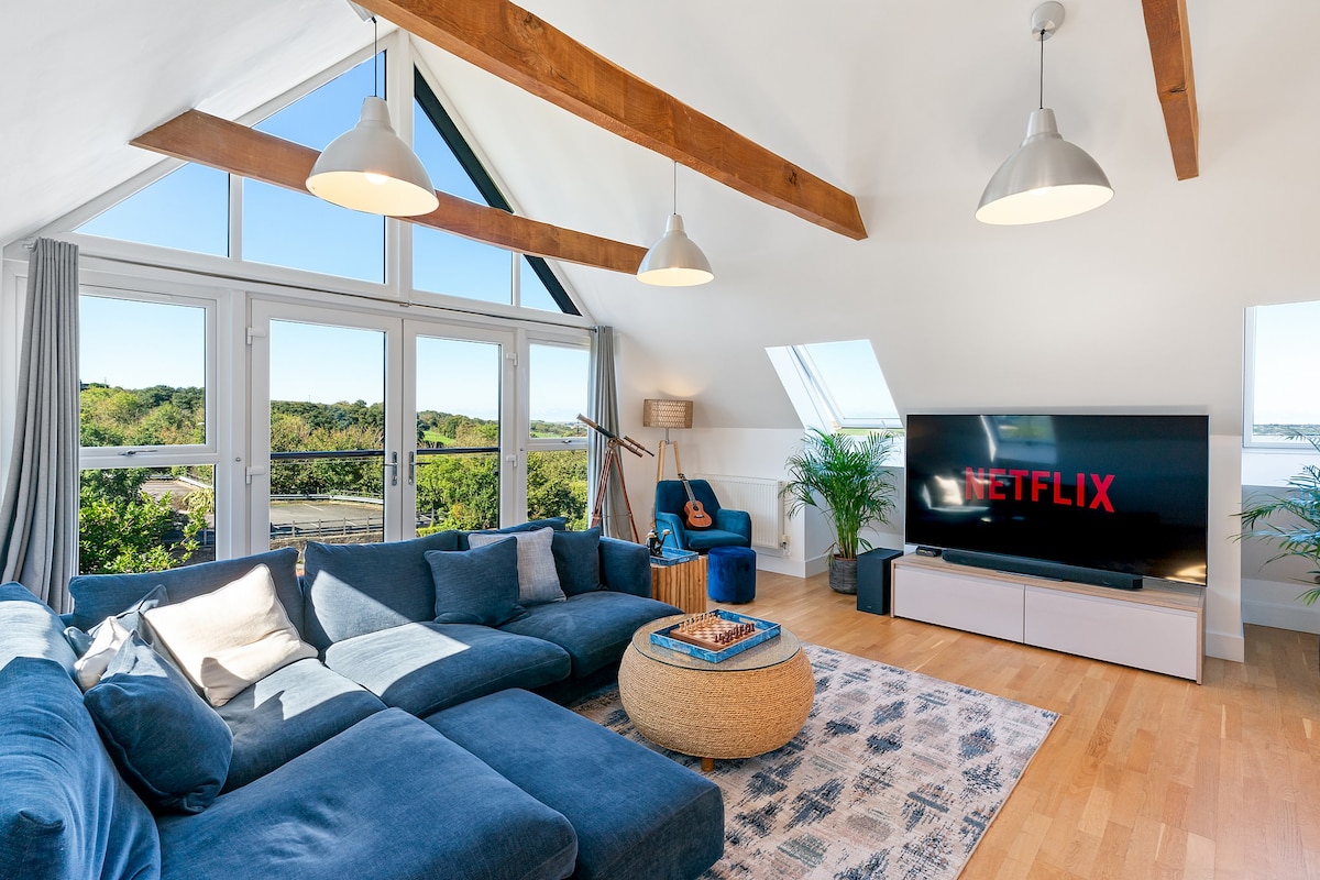 On the gateway to Cornwall and Devon, this spacious and dog-friendly detached house is perfect for getting away with family and friends. Bar-K has recently undergone a major renovation and features a large hot tub, sauna, ping pong table, a cinema room with surround sound and a PS5, and a games room with a full-size pool table, a dartboard, and table football. There is private parking for 6 cars, with an EV charge point, a huge decked area and a large, secure garden.