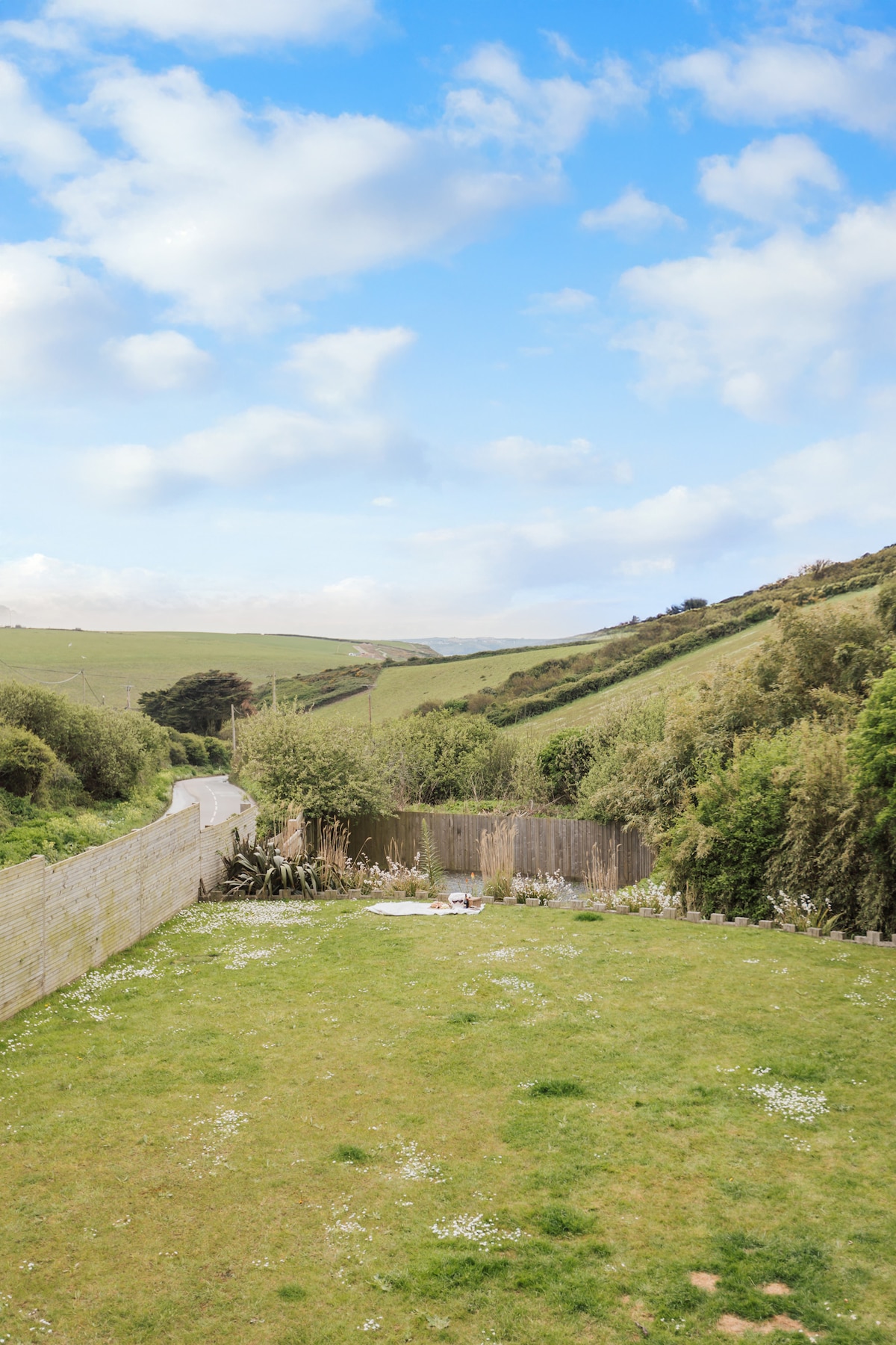 Lovingly designed by local craftsmen & artist friends, The Lodge at Trecara is yards from cliff with breathtaking walks to beaches. Local art hangs on colourful walls, the deepest of baths, waterfall shower and hot tub are bliss. Super king bedroom opens to large garden for al fresco dining & fireside stargazing. Triple bunk room, tree swing for kids. Kitchen with log burner for romantic or family nights in. Home cinema lounge with sea views. Couple/family/dog friendly. Shops/pubs 10min walk