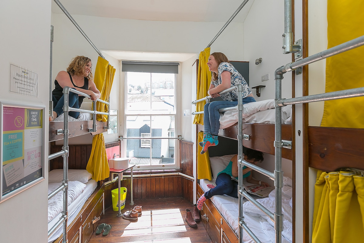 This is a 6 bed PRIVATE room available forup to 6 people (children count as '1 person', no children under 3 years old please). Cohort Hostel is situated in the centre of St Ives within a few minutes of all eateries, beaches, galleries & shops. Rooms are uniquely designed with individual USB ports, plug sockets, lights, privacy curtains and lockable under bed storage for each bed. All bed linen is included (not towels).