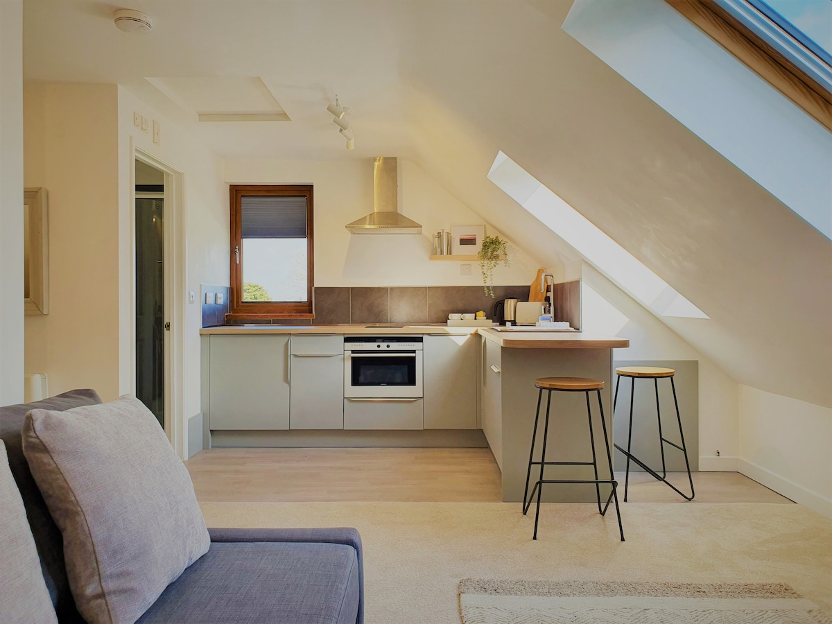 An extremley well presented, self contained studio flat, situated in a quiet area of Penryn, with excellent travel links to Falmouth and surrounding towns. Ideally placed for The University Campus, only a few minutes walk away. It is a stunning architect designed space flooded with natural light. Freshly decorated, newly furnished and equiped, it is new to the rental market this June. This is an ideal retreat for any couple providing an inspiring space in which to relax. Carefully Covid Cleaned.