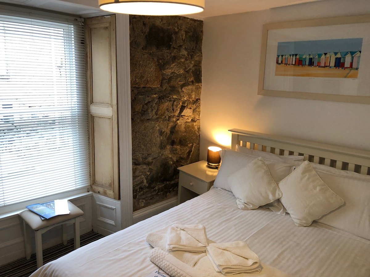 Wheelhouse is located in Capel Cottage which is adjacent to The Sloop Inn and is 20 yards from the harbour beach and The Wharf. The room has a double bed and a private en suite bathroom with shower. The cottage is accessed by five granite steps. Breakfast is not included in the price but is available at the Sloop Inn at extra cost. This property does not have parking but there are a number of public car parks within a few minutes walk.
