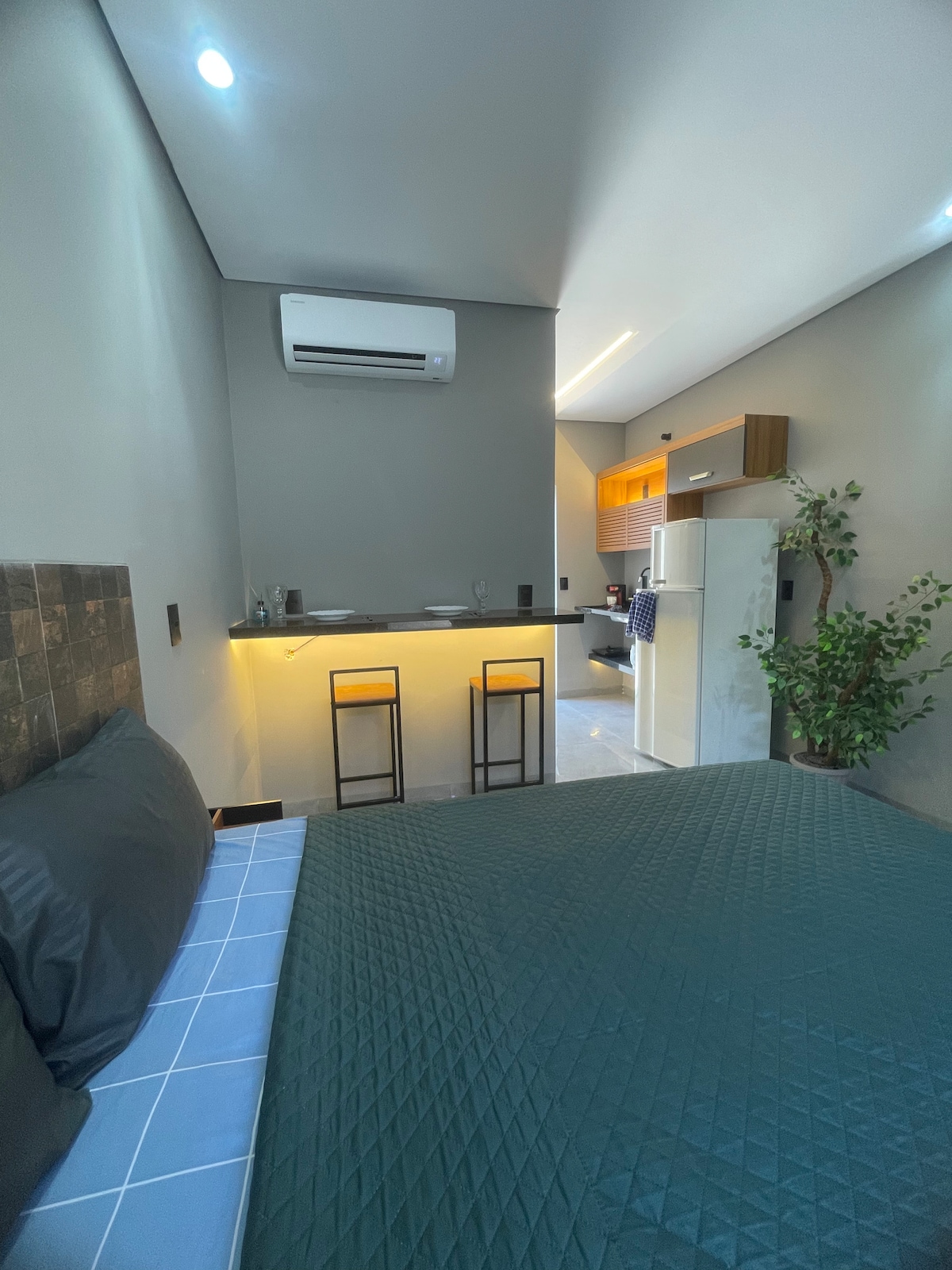 Nosso Loft oferece uma experiência única com uma vista panorâmica deslumbrante. Localizado no último andar, você desfrutará de privacidade e tranquilidade, além de uma vista espetacular da cidade. O espaço é moderno, confortável e projetado para proporcionar uma estadia memorável. Comodidades como Wi-Fi de alta velocidade 500MBps, Globoplay e uma cozinha bem equipada garantem conforto e conveniência. Ideal para casais, cama queen. Mobiliário de qualidade Aguardamos por sua visita!