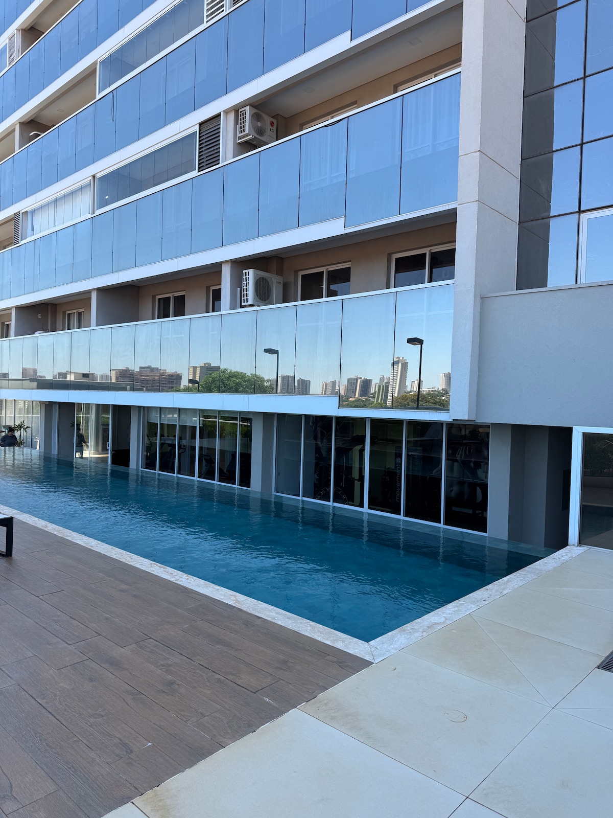 Moderno apartamento de 67m², ao lado da UNIP e a 3 min do hospital Unimed, perto de supermercados, farmácias e outros serviços. Com capacidade para até 6 hóspedes, o espaço é equipado com móveis novos, roupa de cama, toalhas, utensílios de cozinha e ar-condicionado na sala/cozinha e na suíte. O condomínio oferece piscina, mercadinho 24h e vaga de estacionamento. Portaria 24h garante segurança e praticidade para sua estadia, ideal para lazer ou trabalho.