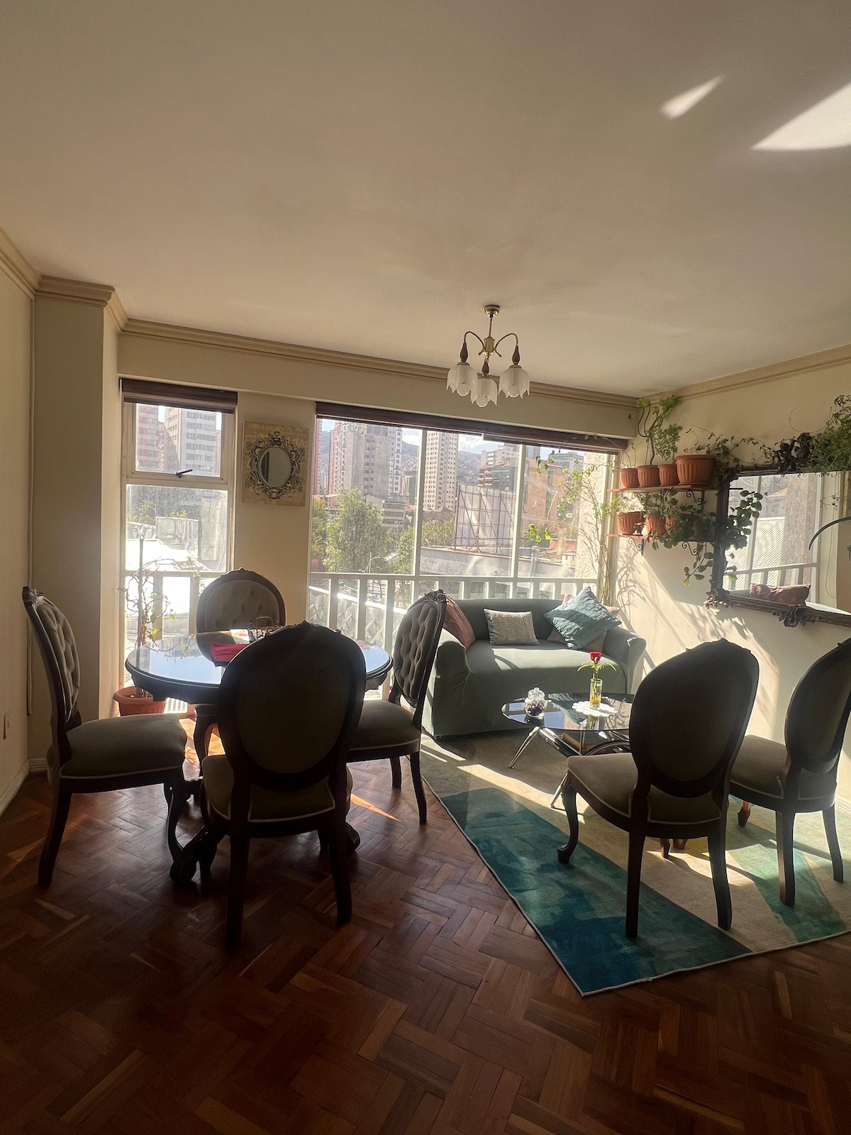 Come enjoy our historic Sopocachi apartment in the highest capital of the world that will make you feel on top of the world. The apartment is very spacious and includes 3 bedrooms, dining room, living room, a fully equipped kitchen and also a small terrace. Beautiful hardwood floors throughout the apartment.