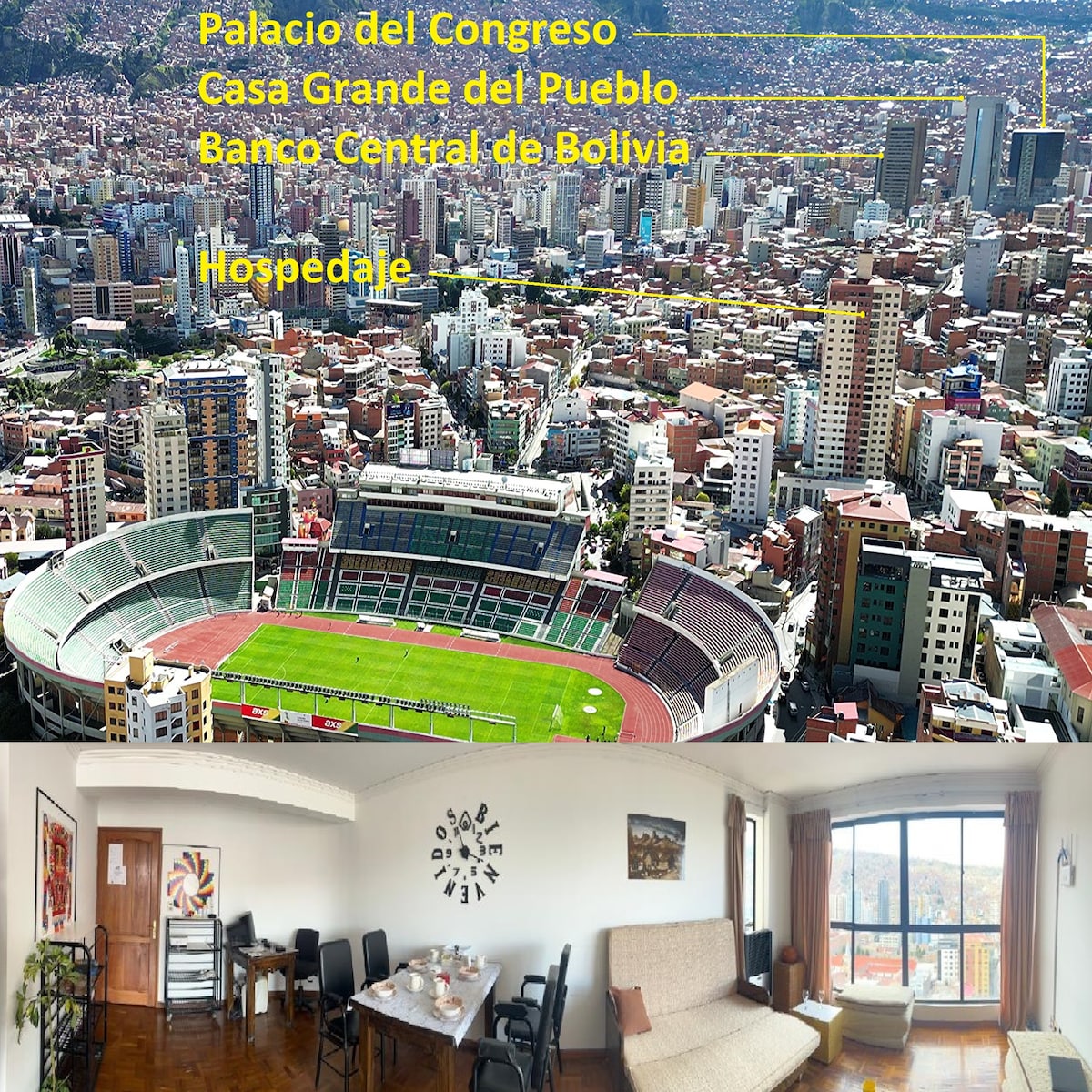 Este lugar tiene una ubicación estratégica: ¡será muy fácil planear tu visita! Cuenta con todas las comodidades para una experiencia única, con una vista espectacular de la ciudad de La Paz desde el piso 24 del edificio, céntrico cerca a entidades públicas, centros comerciales, supermercados, discotecas, bares, resto bares, embajadas, museos, universidades, colegios y con transporte las 24 horas del día. Llevate lindos recuerdos de esta hermosa ciudad con la mejor ubicación de tu hospedaje.
